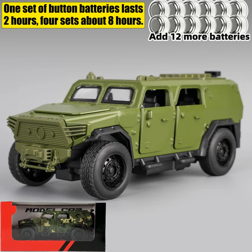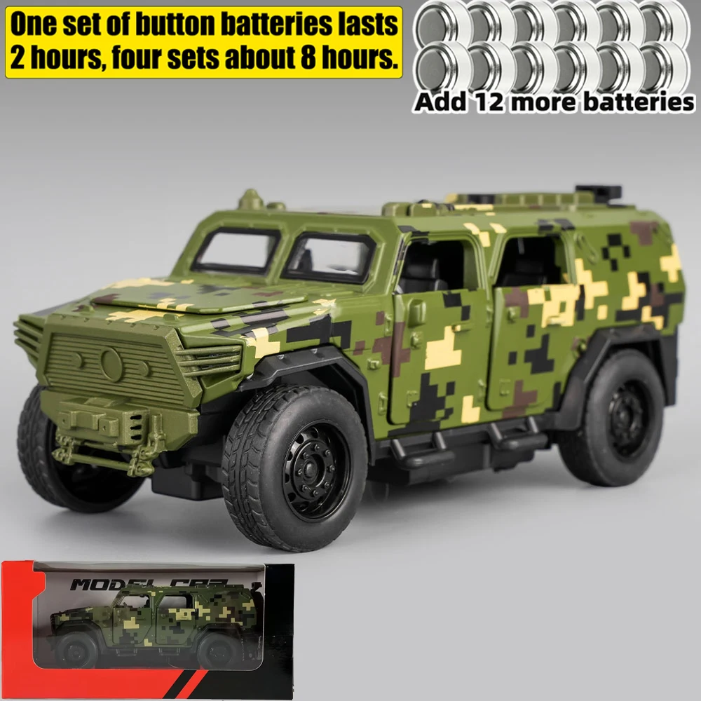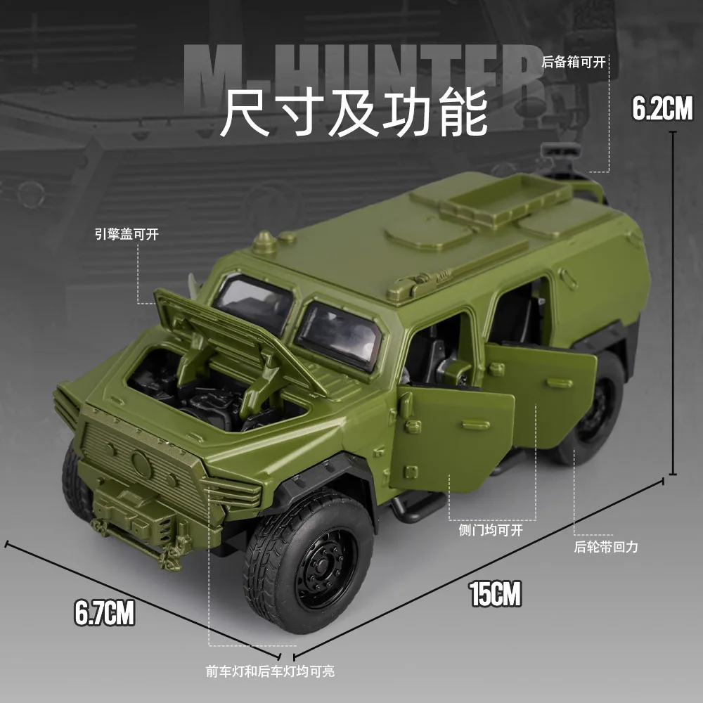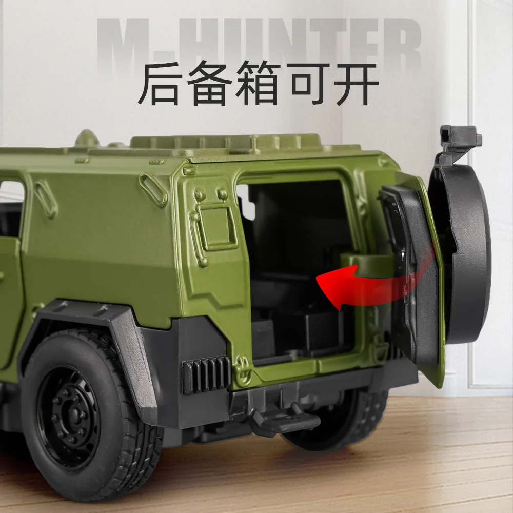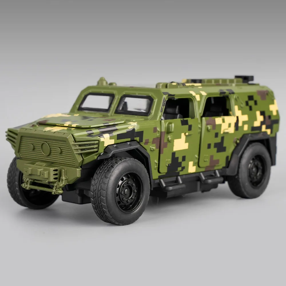 Discover a highly detailed 1:32 scale diecast model of the Dongfeng Mengshi Brave Warrior SUV, crafted from durable metal for collectors and enthusiasts. This rugged military-inspired vehicle features a striking camouflage or green color scheme, including options like camouflage AG13, camouflage AG13 box, and green AG13 box. Its angular, off-road-ready design is accentuated by realistic wheel rims, tread tires, flared wheel arches, and protective bars, reflecting a tactical aesthetic. The model’s sturdy construction and intricate details make it an ideal display piece for hobbyists aged 14 and above, seamlessly blending military style with high-quality craftsmanship for an impressive collection addition.
