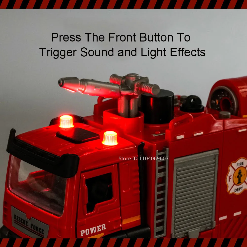 Experience the thrill of real emergency vehicles with this highly detailed 1:32 scale model fire engine or sweeper. Crafted with a durable diecast metal body, plastic chassis, and rubber tires, the fire engine measures approximately 20.5 x 5 x 9 cm, while the sweeper is about 19.2 x 7 x 7.5 cm. The fire truck features an operational water compartment that sprays fine mist, realistic sound and light effects activated by pressing the front button, a movable hydraulic rod for realistic operations, and openable doors on both sides. Its pull-back mechanism and electronic functions make it an engaging display piece or dynamic toy for collectors and enthusiasts.