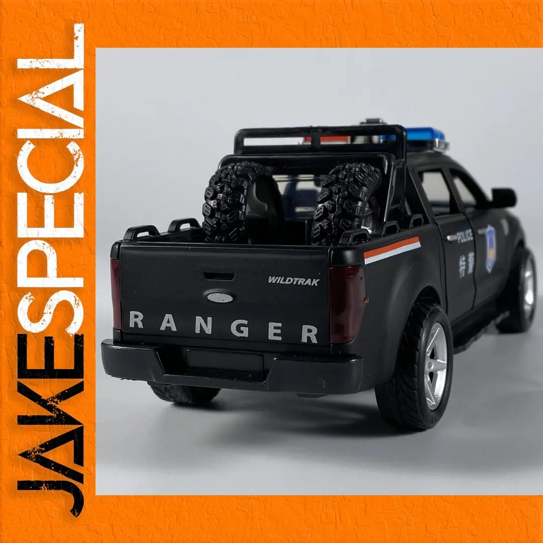 Step into the world of adventure with this 1:32 scale Ford Raptor F350 Off Road Pickup Truck diecast model. Crafted from durable metal, this striking model features a sleek black body that instantly captures attention. The meticulous detailing includes the bold silver “RANGER” lettering on the tailgate and “WILDTRAK” designation below, signifying its robust off-road capabilities. The addition of two spare tires in the truck bed, a bold blue light bar, and a dynamic white stripe with an orange edge enhances its visual appeal, making it a must-have for collectors and enthusiasts alike. Get ready to display this incredible piece that reflects power and style.