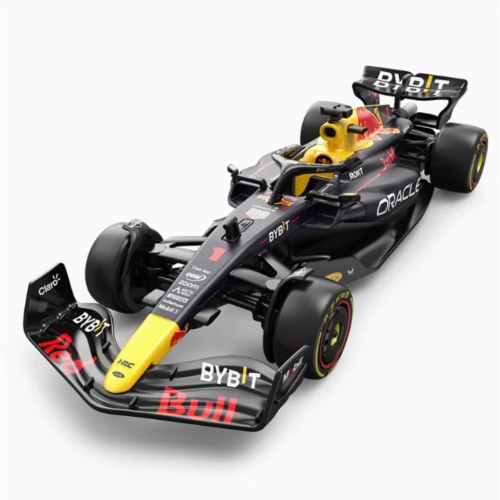 Experience the exhilarating world of Formula One racing with this stunning 1:32 scale diecast model of the 2023 Champion RB19. Crafted meticulously from high-quality alloy and plastic, this model showcases a sleek black body accentuated with vivid yellow and red highlights, delivering an authentic racing aesthetic. The front wing is expertly designed for optimal aerodynamics, while prominent sponsor logos such as “BYBIT” and “Oracle” add to its professional allure. Ideal for collectors and enthusiasts alike, you’ll find yourself captivated by the detailed construction and craftsmanship of this exquisite racing car, perfect for display or play. Ignite your passion for the sport with this impressive addition.