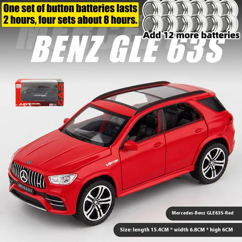 This stunning 1:32 scale alloy diecast model of the GLE 63S Off Road vehicle in a striking red color is sure to captivate any enthusiast. With its glossy finish, intricate detailing, and authentic design elements like the Mercedes-Benz emblem, it excels as both a collector's item and a functional play model. The panoramic sunroof adds an extra touch of realism, while the robust wheels and detailed alloys perfectly complement the off-road concept. Equipped with sound and light effects, this model offers an interactive experience, making it a perfect gift for anyone aged 14 and above who appreciates quality craftsmanship in their collectibles.