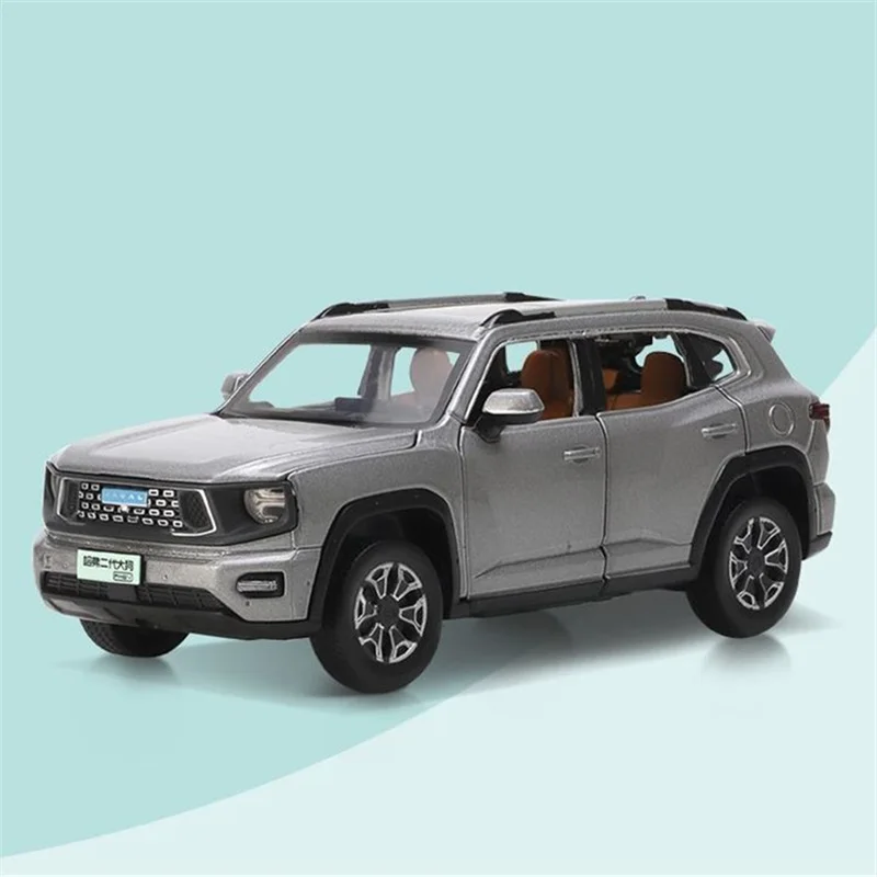 Imagine adding a striking and highly detailed replica of the Haval Dargo H7 SUV to your collection or display. This meticulously crafted 1:32 scale model measures approximately 14.6 cm in length, 6.7 cm in width, and 5.4 cm in height, perfectly capturing the rugged essence of the original vehicle. The body features a sleek metallic silver or gray finish, complemented by realistic design elements such as a bold grille, LED-style headlights, and textured tires for authentic off-road appeal. The transparent windows reveal a detailed interior with brown seats and a dashboard, while the roof rails add an adventurous touch. Whether for display or play, this model exudes durability and style, making it a true collector’s item or a captivating children's toy.