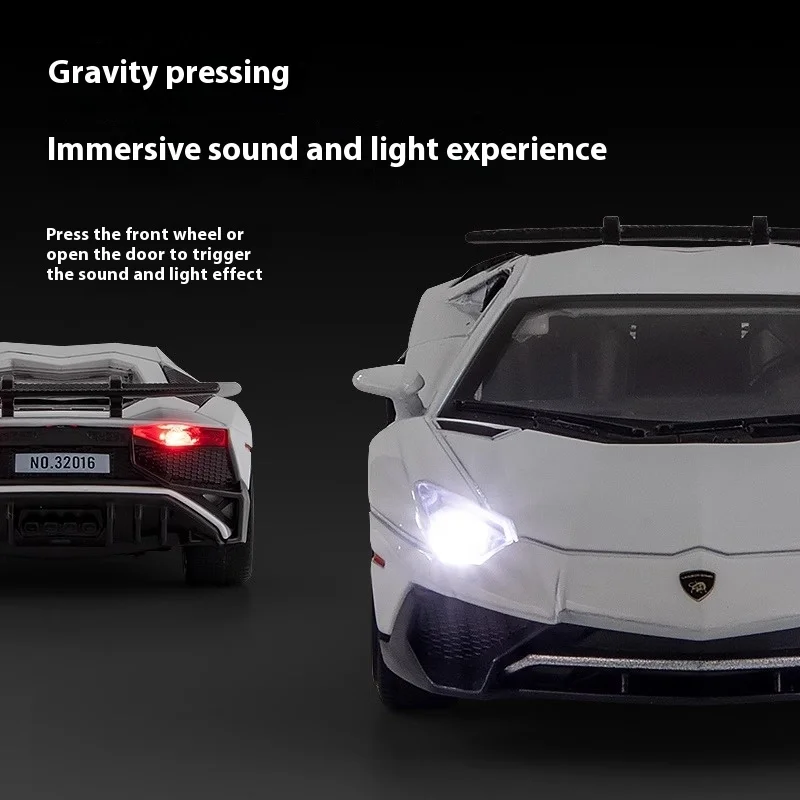 - Constructed with sturdy metal, this 1:32 scale model offers durability and a high-quality feel, capturing every detailed element of the real Lamborghini Aventador LP750-4.