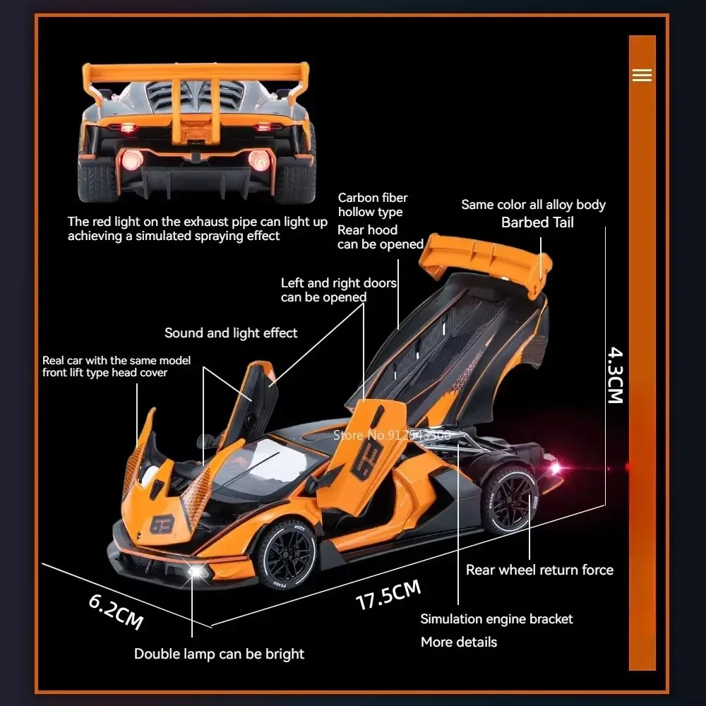 Imagine the envy of your friends as this beautifully detailed model sits proudly on your shelf or desk. Its realistic features, combined with functional elements like sound, light, and opening doors, make it an engaging collectible or gift. Perfect for car enthusiasts and collectors seeking authenticity and craftsmanship. Don’t miss out on owning this striking piece that combines style, detail, and interaction—all of which make it a true standout in your collection. Add this high-quality diecast Lamborghini to your collection today and enjoy a display of speed and elegance every time you look at it.