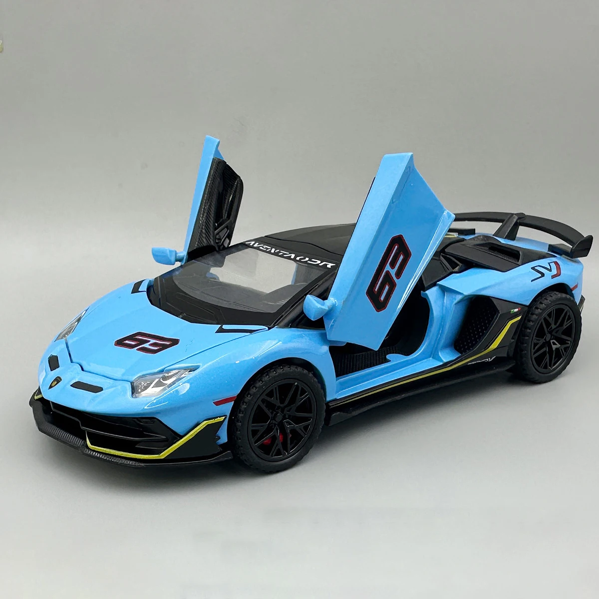 Experience the thrill of owning a miniature Lamborghini supercar with this meticulously crafted diecast model. Designed to capture the essence of real high-performance vehicles, it features an alloy and plastic construction with a glossy, vibrant finish that mimics authentic car paint. Available in stunning colors—blue, yellow, green, and red—each model displays sporty lines, large rear spoilers, vented hoods, and detailed side mirrors, emphasizing a bold, race-inspired aesthetic. Its precise scale offers an authentic look, making it an ideal collectible or display piece. Suitable for children aged 4 and above, this model combines durability with eye-catching detail, allowing you to bring the excitement of Lamborghini into your collection or play area. Experience a perfect blend of realism and fun with this high-quality miniature supercar.