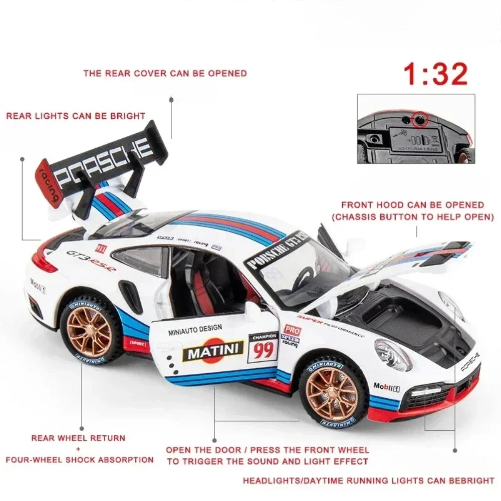 Experience the thrill of owning an exquisitely crafted 1:32 scale diecast model of the iconic Martini racing sports cars. Available in stunning colors including Martini Blue, White, Black, Red-Blue, and Red-Gray, this highly detailed collectible captures the sleek, aerodynamic lines and distinctive racing decals of real high-performance vehicles. Its metallic body with realistic decals, combined with functional features like sound, lights, pull-back motion, and opening doors, makes it a standout piece for enthusiasts. Whether displayed on your shelf or used for display, this model brings a sense of excitement and craftsmanship to your collection. Its durable alloy body ensures longevity, making it perfect for adult collectors. Just imagine the pride of showcasing this striking model in your home or office today.