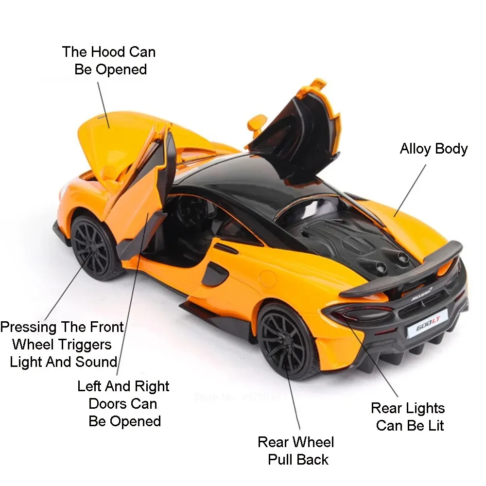 Elevate your collection or gift it to a fellow enthusiast who appreciates detailed craftsmanship and high-performance design. This miniature embodies speed, sophistication, and meticulous detail, making it an ideal addition to any collection or display. Don’t miss the chance to bring a realistic, detailed replica of the legendary McLaren 600LT into your life, welcome it into your home, and enjoy hours of admiration and play. Its high durability, interactive features, and stunning aesthetics ensure lasting satisfaction for car lovers and collectors alike.