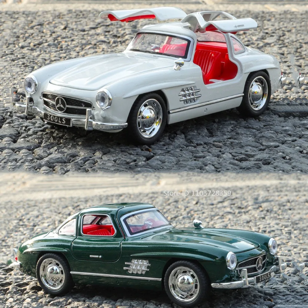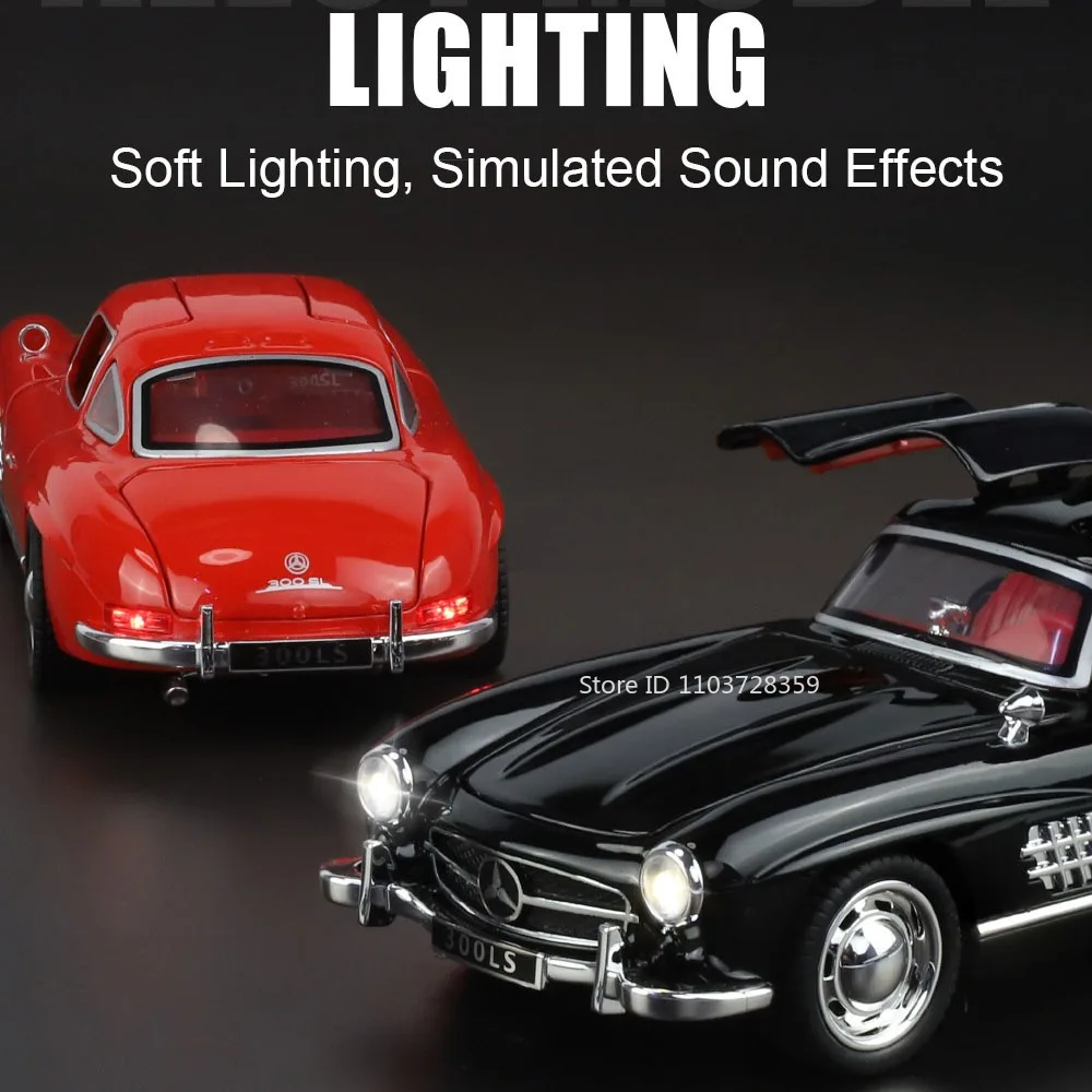 Experience the elegance and timeless design of the Mercedes-Benz 300SL and E300L with this meticulously crafted miniature model. Featuring a sleek alloy body complemented by a plastic chassis and rubber tires, this high-detailed collectible brings vintage luxury directly to your hands. Available in vibrant colors such as black, green, red, white, and blue, it measures approximately 15.5 to 16 centimeters in length, ideal for display or play. Equipped with sound and light functions, working doors, engine hood, and trunk for realistic interaction, and a pull-back motor for effortless forward movement, it offers both aesthetic appeal and durability. Its resistant construction makes it perfect for enthusiasts and collectors seeking a robust, visually striking piece.