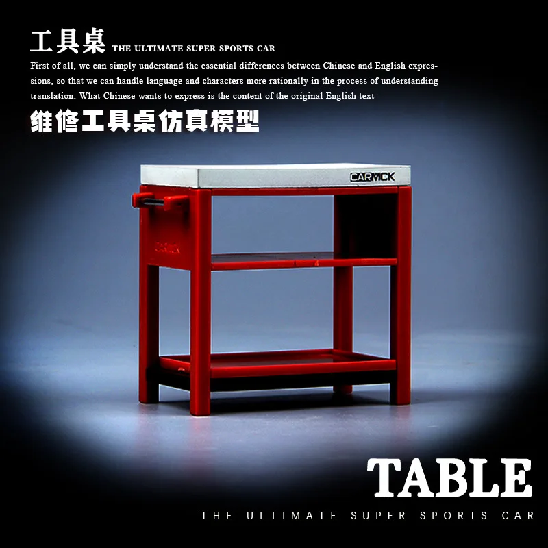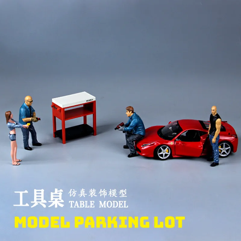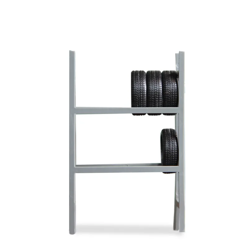 - Includes a wheel rack without wheels and a repair tool table, creating a complete fuel station environment for toy car displays.