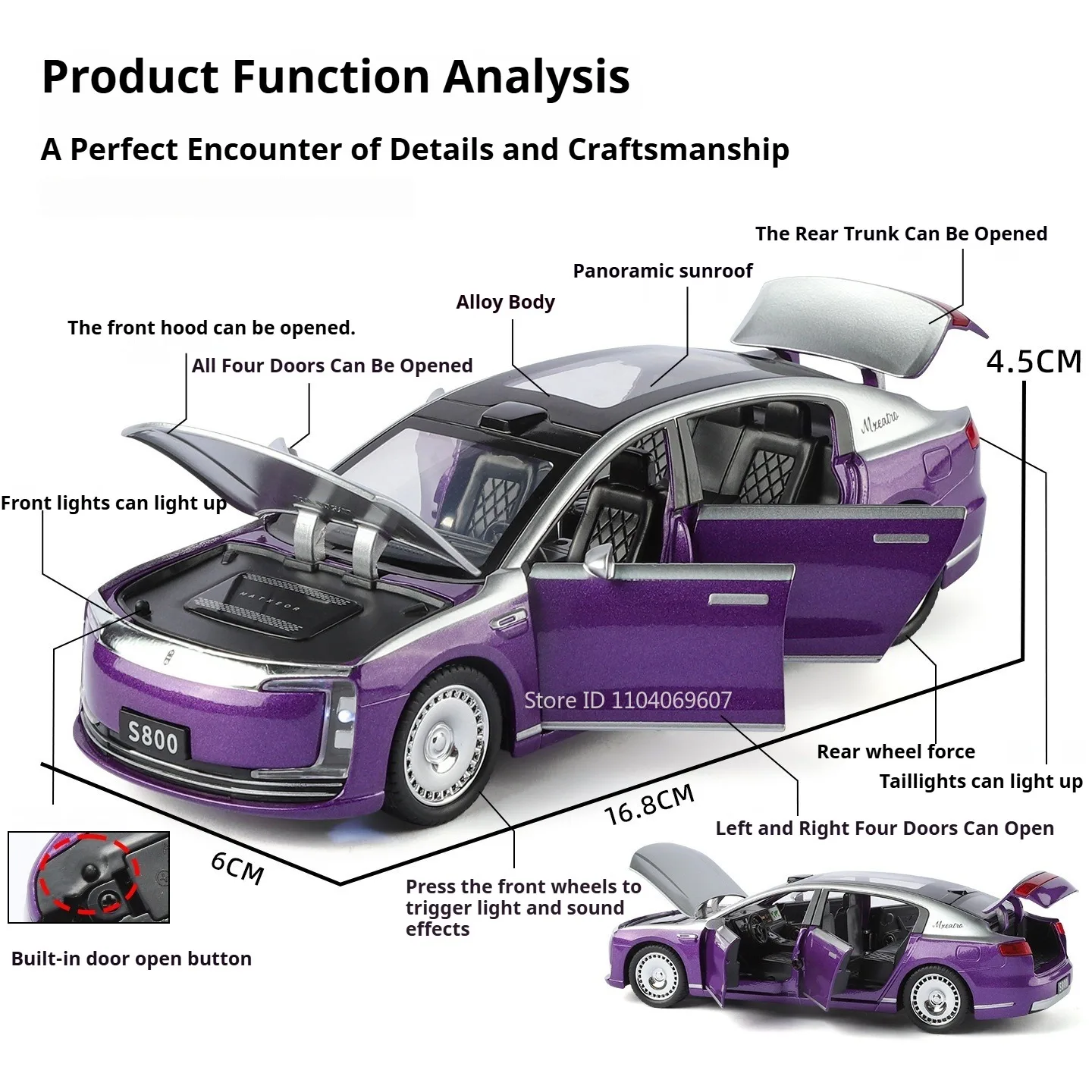 - Crafted with a durable alloy metal body, plastic chassis, and rubber tires, measuring approximately 16.8 x 6 x 4.5 cm for S800 and 15.5 x 6.7 x 4.3 cm for SU7, ensuring both realism and resilience.