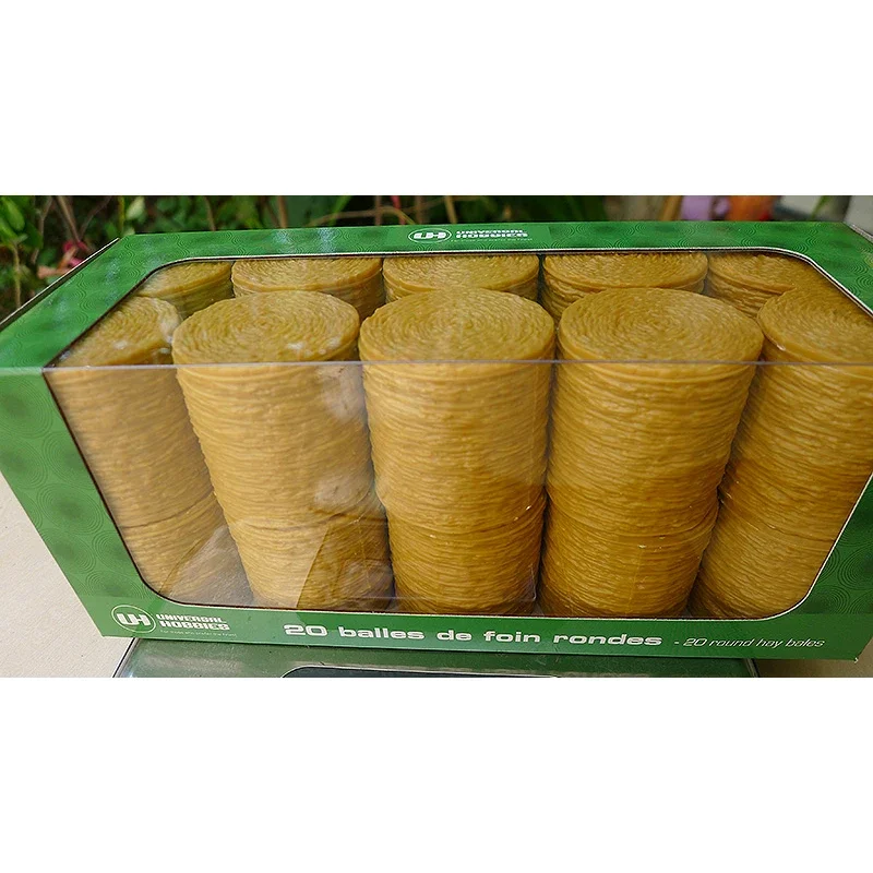 Enhance your model farm scene with this exceptional set of round hay bales, crafted from light brown plastic to simulate authentic hay. Each bale, measuring approximately 3.5 cm in diameter and 4 cm in height, features a detailed texture that mimics tightly packed hay. The cylindrical shape and flat tops contribute to their realistic appearance, perfect for collectors and agricultural enthusiasts. The neutral background allows the bales to stand out beautifully, creating a rustic charm that invites imagination. Ideal for display, gifting, or model building, these hay bales are an essential addition to any miniature agricultural setting.