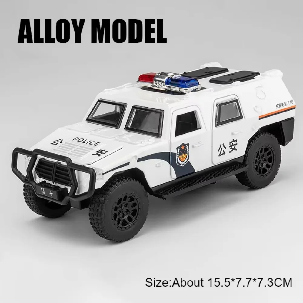 Bring this realistic police SUV into your collection or gift it to a passionate enthusiast. Its authentic details, functional features, and sturdy build make it a standout piece. Whether displayed on your shelf or used for imaginative scenarios, this toy ensures quality, fun, and realism. Don't miss the chance to own this impressive model—order today and make your collection truly police-inspired!
