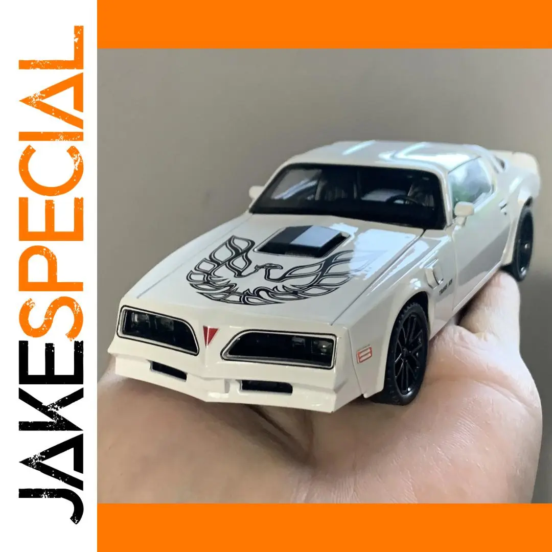 Experience the thrill of owning a meticulously crafted diecast replica of the iconic Pontiac Firebird Trans Am. This high-simulation miniature captures the aggressive yet sleek design of the legendary muscle car with superb details. Its white body, accented with bold black graphics on the hood and black multi-spoke wheels, exudes sporty elegance. The front grille with black outlines, the hood featuring a stylized eagle or phoenix decal, and the precise modeling of headlights and windows make it a standout display piece. Compact yet realistic, this model is perfect for collectors and enthusiasts who want to showcase a true representation of American muscle car craftsmanship. Crafted with durable metal, it promises both aesthetic appeal and long-lasting quality as a collectible or decorative item.