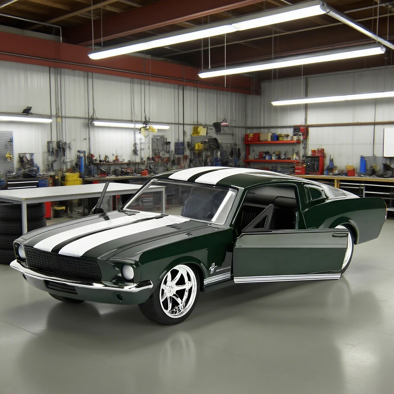 Imagine owning a piece of the Fast & Furious legacy with this exquisite 1:32 scale diecast model of the SEAN Mustang. Measuring approximately 12 cm in length, this sleek vehicle captures the essence of vintage muscle cars with its deep green body and classic white racing stripe. The intricate front grille and clear plastic windows revealing a detailed interior with a sporty black dashboard enhance the realism. Built from durable alloy and plastic, it offers both quality and visual appeal. This model is a perfect gift or display piece for collectors, and its lightweight design makes it enjoyable for all enthusiasts aged 14 and older.