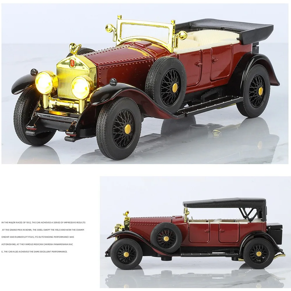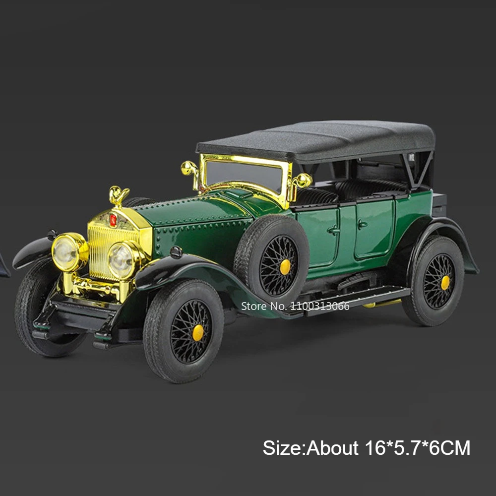 Imagine adding a touch of timeless luxury to your collection with this beautifully crafted miniature. Designed with meticulous attention to detail, it captures the elegance of a classic vintage car, specifically the iconic Rolls Royce Phantom 300SL. Its glossy green body, complemented by black fenders and a textured black convertible roof, creates a striking visual appeal. Gold accents on the radiator grille, headlamps, mirrors, and hubs elevate its luxurious appearance. The model’s realistic proportions, intricate detailing, and high-quality zinc alloy material make it a captivating display piece. Whether as an ornament or a collector’s treasure, this model promises to bring your admiration for vintage design to life.
