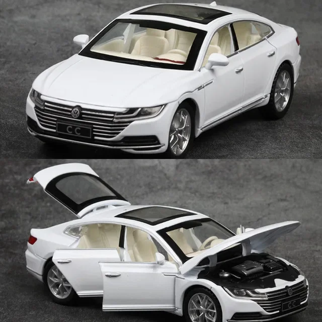 This beautifully crafted 1:32 scale diecast model of the Volkswagen CC is predominantly white, finished with a sleek shine that highlights its modern aesthetics. The model boasts a solid metal body, well-designed with smooth lines and authentic details, including a detailed front grille and a Volkswagen emblem. With six openable doors, enthusiasts can explore the intricacies of its detailed interior. Equipped with realistic rubber tires and a lightweight plastic chassis, this model not only showcases quality but also features sound and light functions that enhance its playability. Perfect for collectors and fans of precision engineering, this Volkswagen CC model is a must-have collectible.