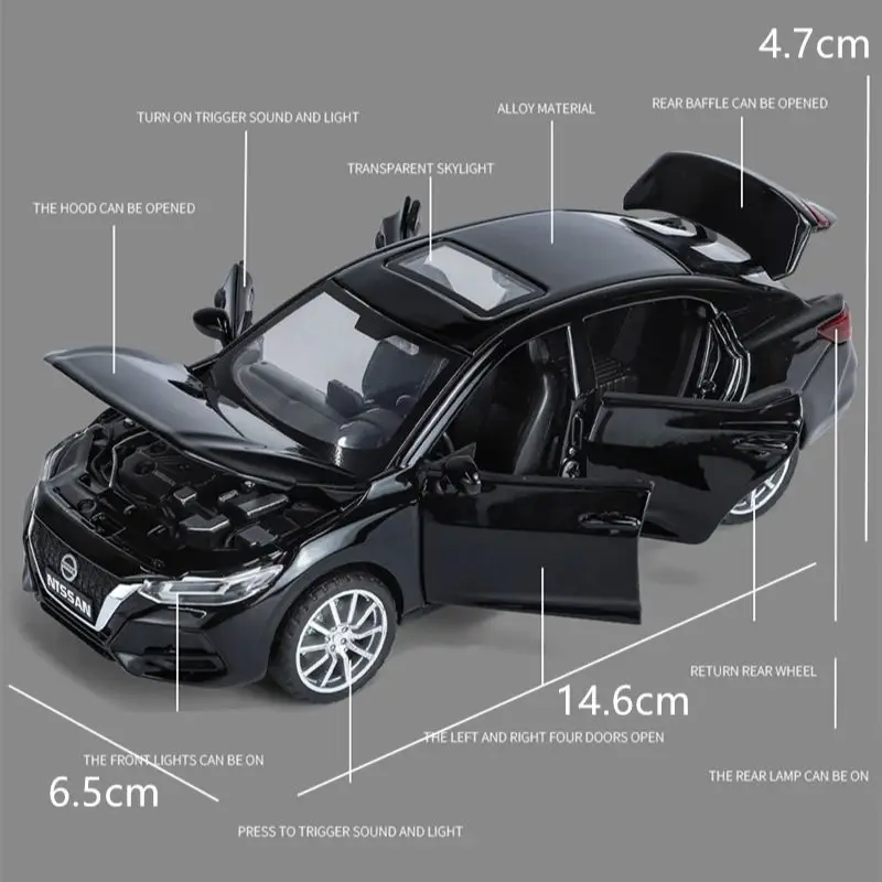Enhance your collection or gift a loved one with this exquisite miniature car. Its stunning detail, realistic features, and appealing design make it an outstanding addition to any display. Whether for a passionate collector or someone looking for a distinctive toy, this Sylphy model seamlessly combines craftsmanship and functionality. Don't miss your chance to own this beautifully crafted replica that promises durability and visual impact. Add it to your cart today and enjoy possessing a piece of automotive elegance. Your perfect miniature waiting to be admired is just a click away!