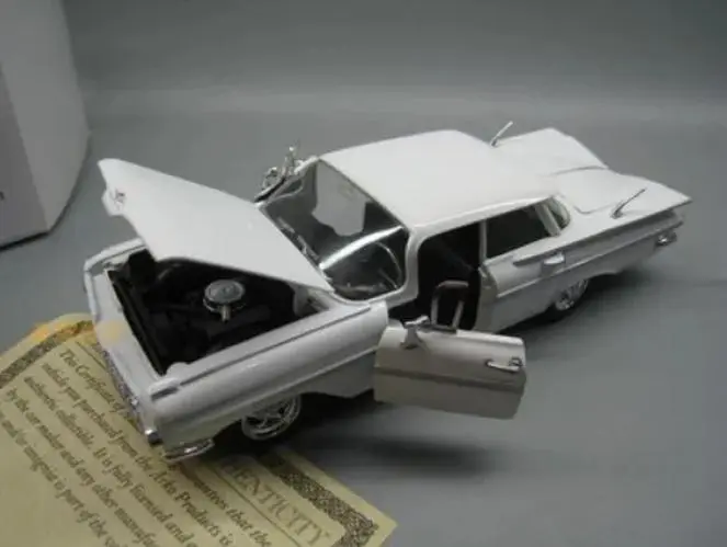 - Exquisite finish with chrome bumpers, grilles, hubcaps, and stylized exterior details capturing mid-20th-century style.