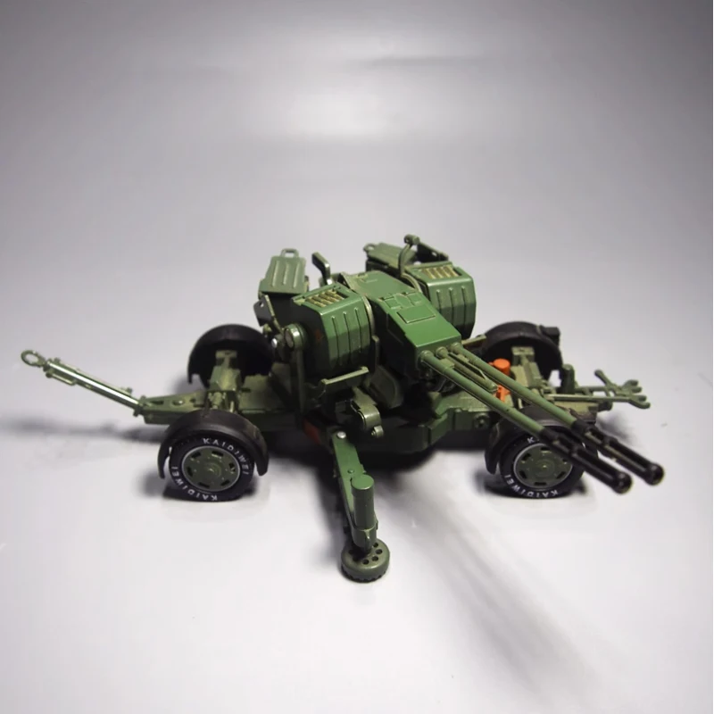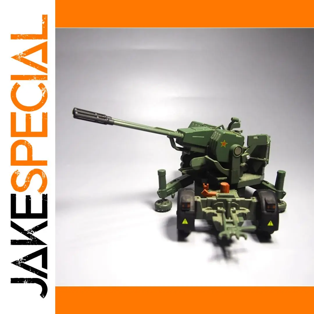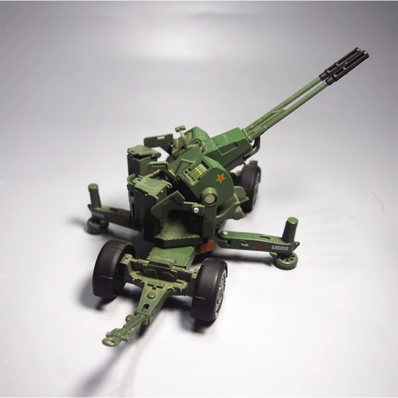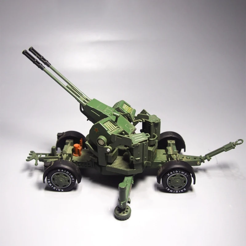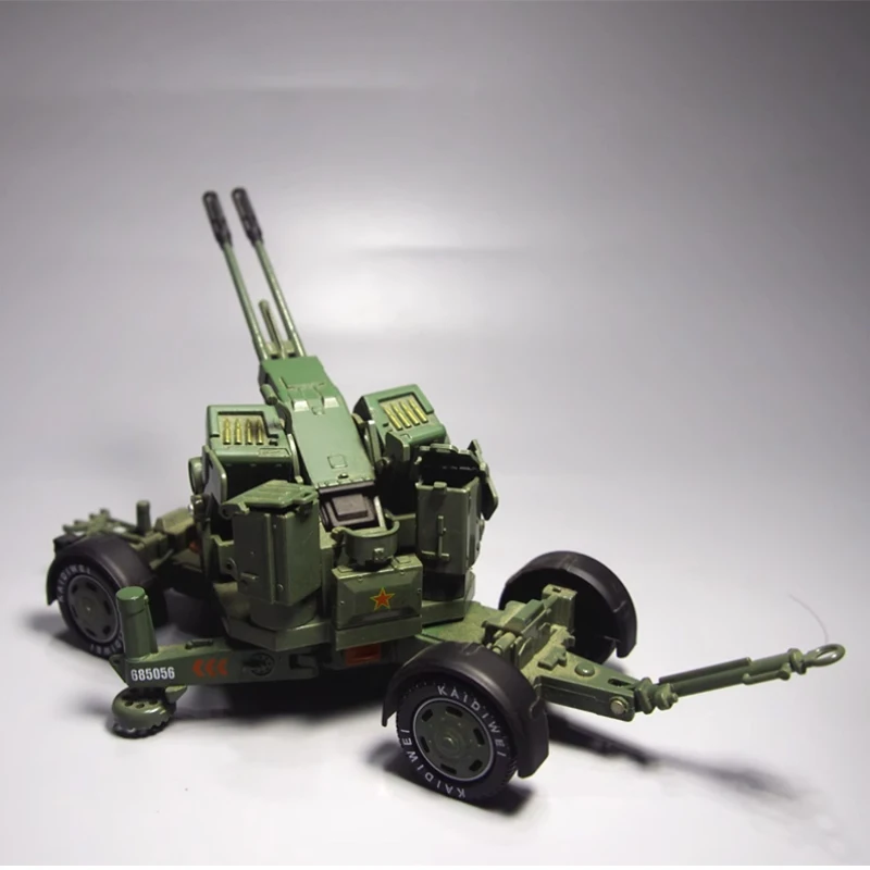 Discover the striking visual appeal of this meticulously crafted alloy anti-aircraft model. Painted in military green with a vivid red star emblem on the main housing, it perfectly captures the rugged, tactical essence of military artillery. The twin barrels, approximately 35mm long, are parallel and horizontally aligned, featuring hollow, multi-sectioned muzzles with detailed surface textures and panel lines that add depth and realism. The sturdy metal alloy construction provides a sturdy yet fragile feel, ideal for display. The mobile platform includes detailed wheels with black bases, orange and yellow markings, stabilizing legs, handles, hinges, and tiny bolts, creating a highly detailed, highly realistic presentation. This model is perfect for collectors and enthusiasts seeking a compelling military art piece that echoes tactical precision and military history.