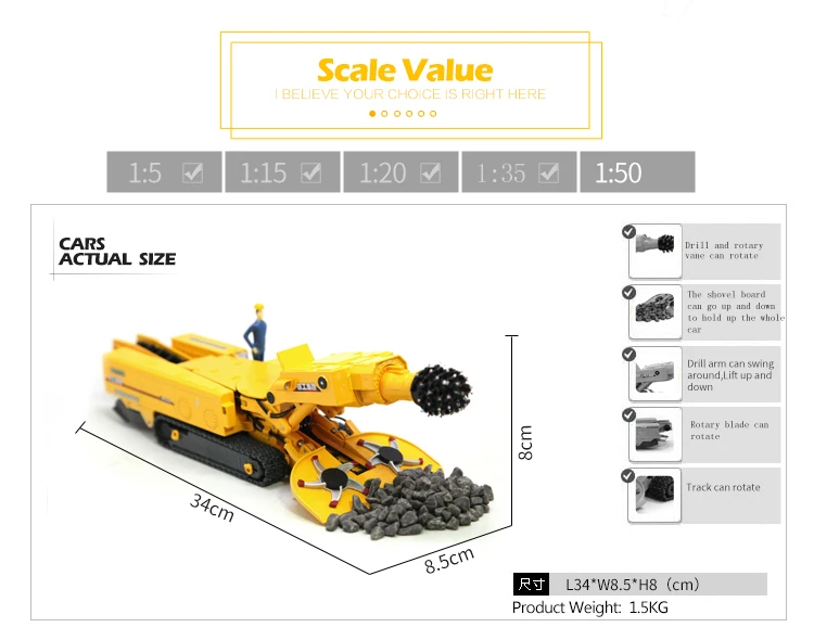 1:35 Scale Diecast XCMG EBZ 200 Road Header Model