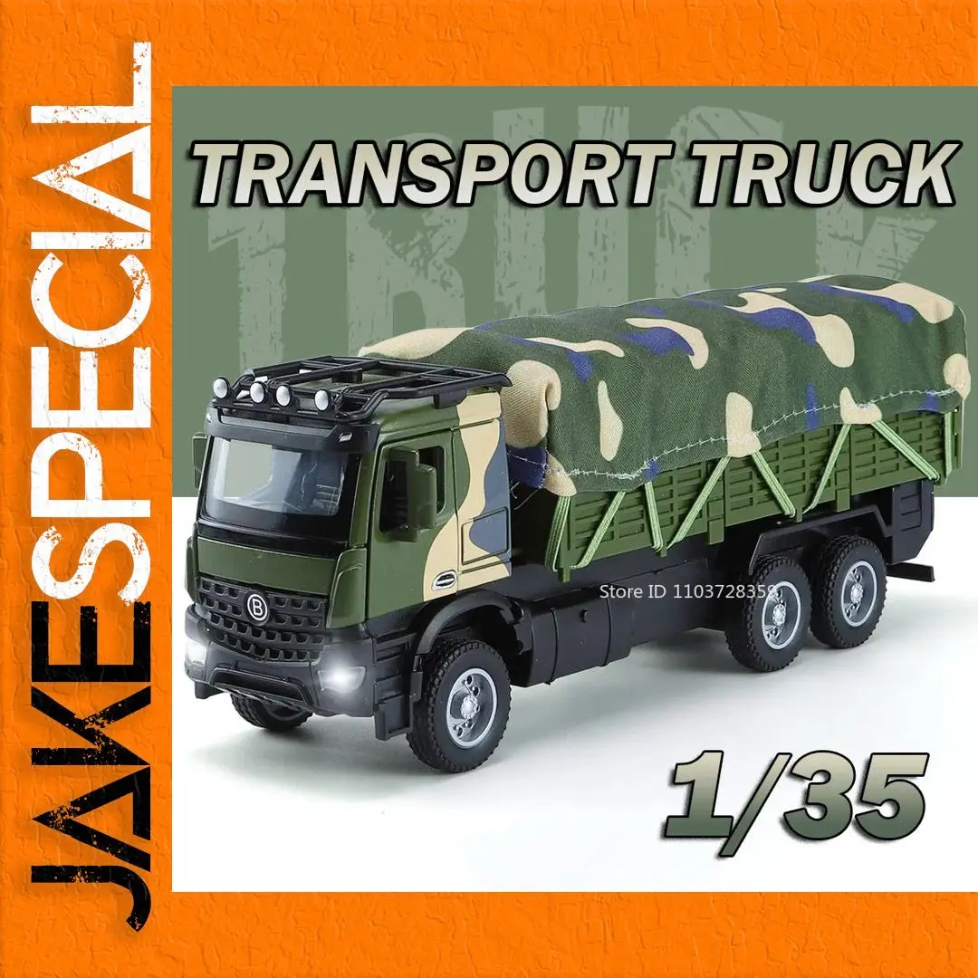 Experience the thrill of commanding a detailed military transport truck with this highly realistic 1:35 scale model. Crafted from durable metal diecast with a plastic chassis and rubber tires, it offers exceptional authenticity for collectors and enthusiasts. The truck features a rugged military green finish, a removable woodland camouflage tarpaulin, and an openable alloy front to reveal detailed internal components. With sound and lighting functions activated by pressing the front wheels, and a pull-back movement for dynamic play, this model combines entertainment with realism. Measuring approximately 21 x 6 x 8 cm, it beautifully captures the essence of real military transport vehicles, making it an excellent display piece or gift. Its textured surfaces and intricate craftsmanship emphasize its high simulation level, perfect for adult collectors or model enthusiasts.