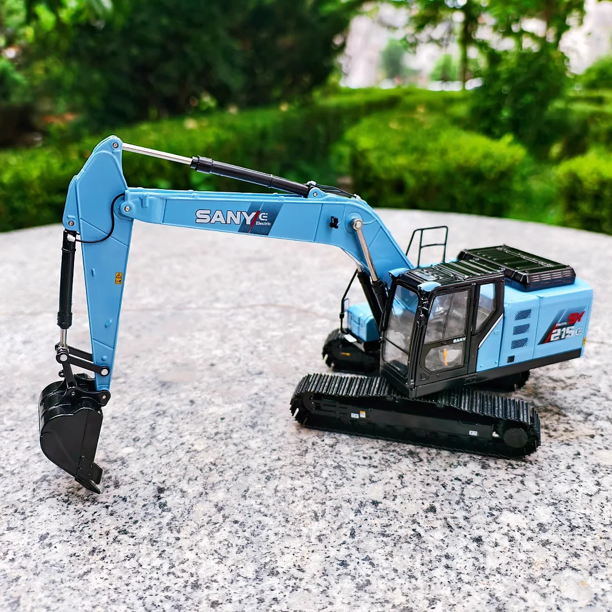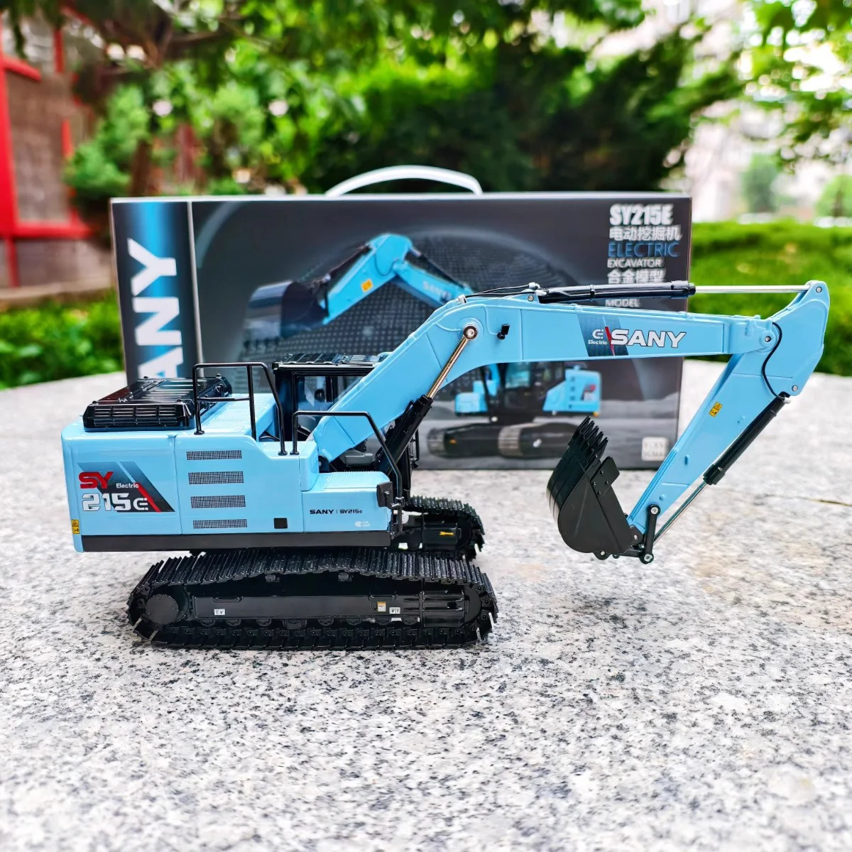 This highly detailed 1:35 scale diecast model of the Sany SY215E excavator is crafted from alloy and ABS plastic, showcasing intricate realism with vibrant blue paint, black accents on tracks and articulated components, transparent windows, textured rubber tracks, and visible joints and pistons. Designed as a collectible, it features precise decals and a finished appearance, making it an ideal display piece for enthusiasts aged 18 and above. The model comes in a brand-new, original packaging box, perfect for collectors seeking a lifelike replica of this powerful construction machinery.