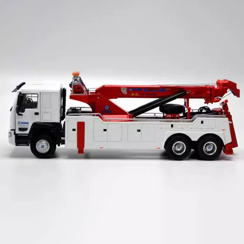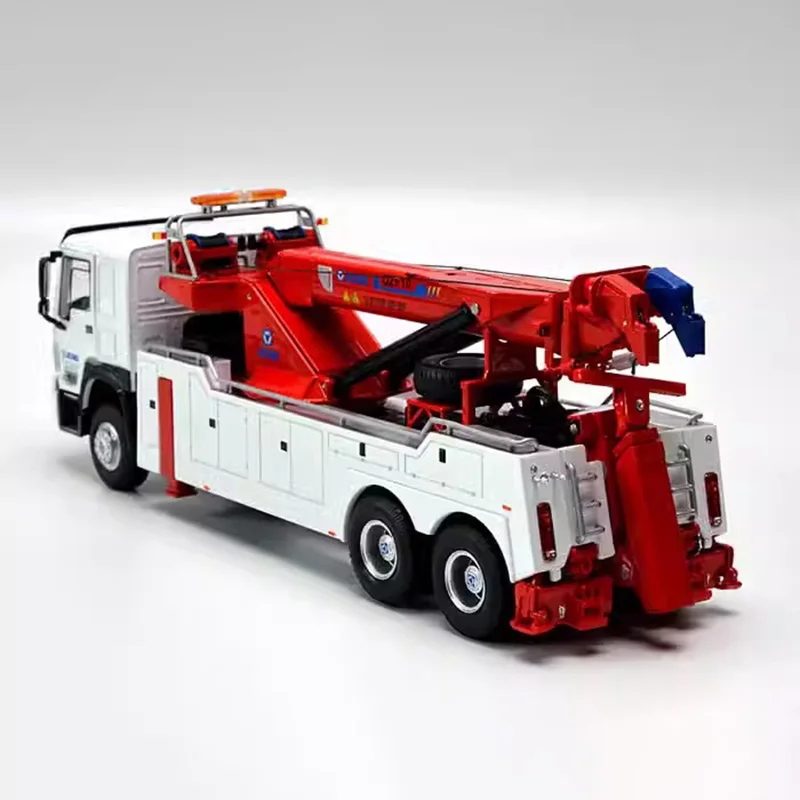 Experience the impressive craftsmanship of this detailed 1:35 scale XCMG road rescue vehicle model, designed for collectors and enthusiasts alike. Crafted with a sturdy alloy main body, complemented by plastic components and rubber tires, this model showcases an authentic miniature version of a rescue crane trailer. With a sleek white finish accented by bold red details, including a telescopic crane arm and warning lights, it captures the essence of a real emergency response vehicle. Features such as openable doors, a liftable front, and extendable crane arm bring a sense of realism and interactivity to display. Carefully designed with meticulous attention to detail, this model guarantees a premium display piece or thoughtful gift for those passionate about industrial vehicles and technical replicas.