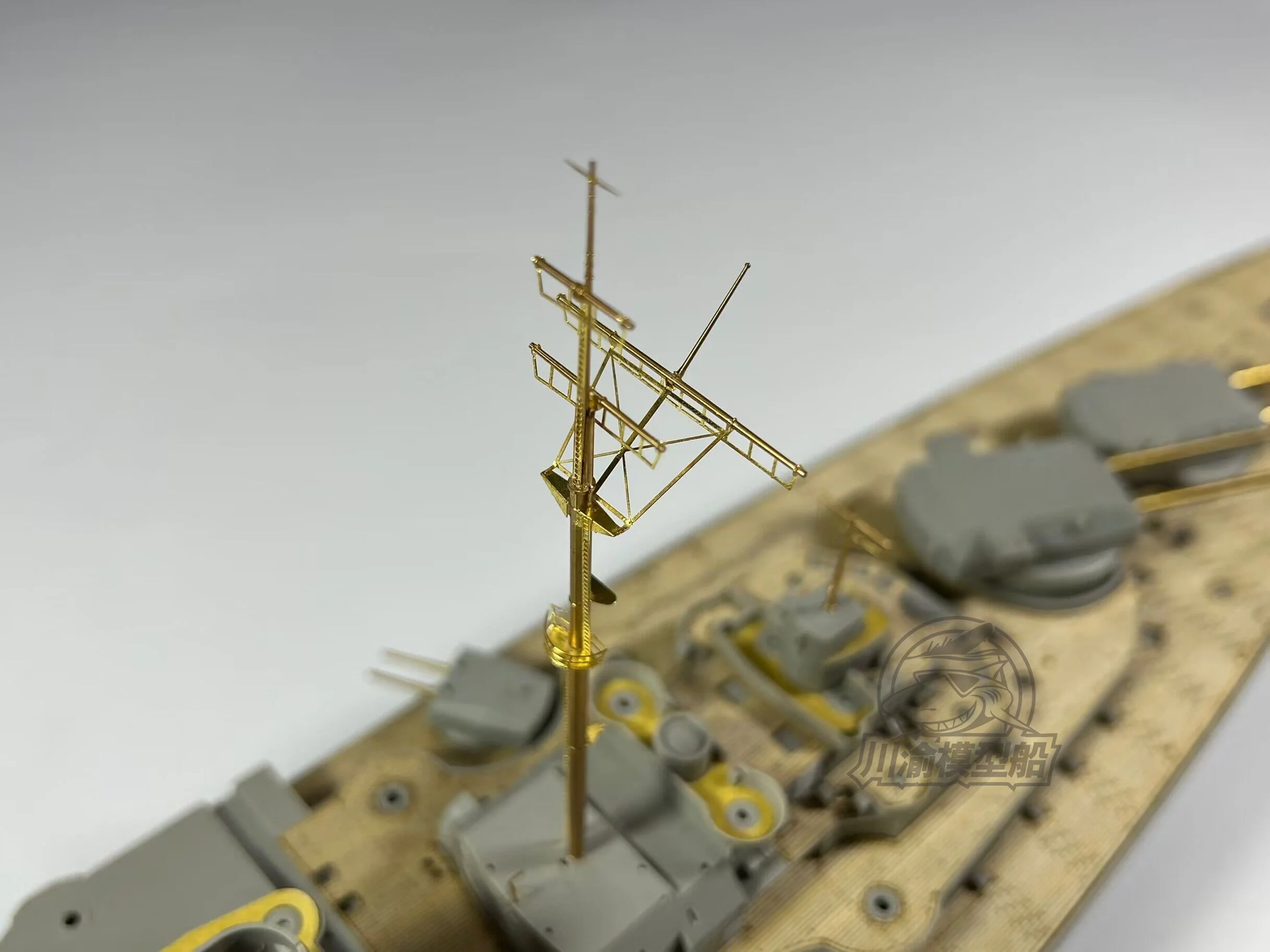 - Includes detailed metal mast components finished in shiny metallic gold, offering a luxurious appearance that enhances the upscale realism of your Tirpitz model.