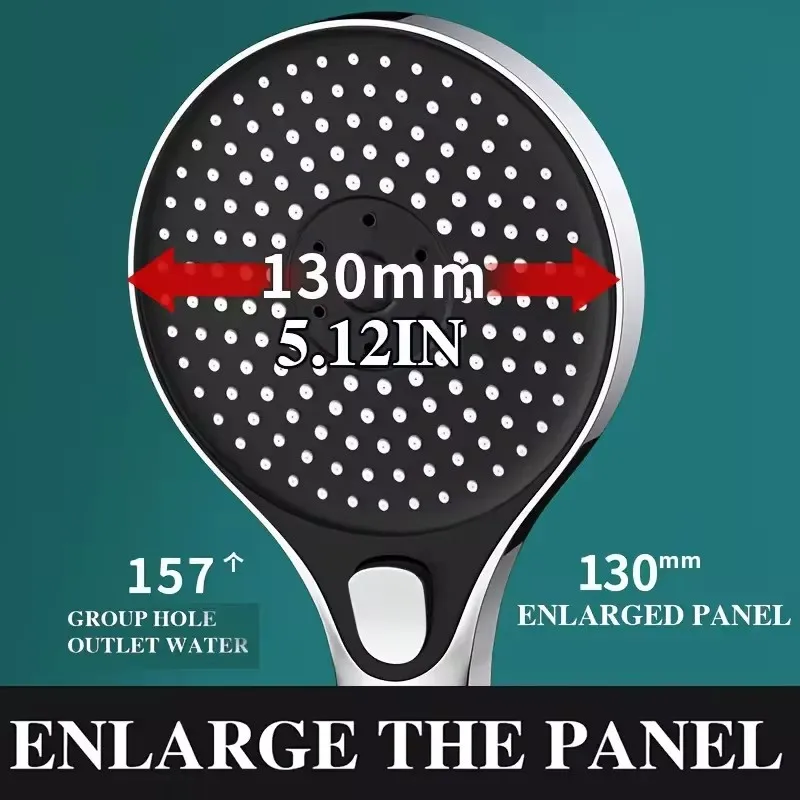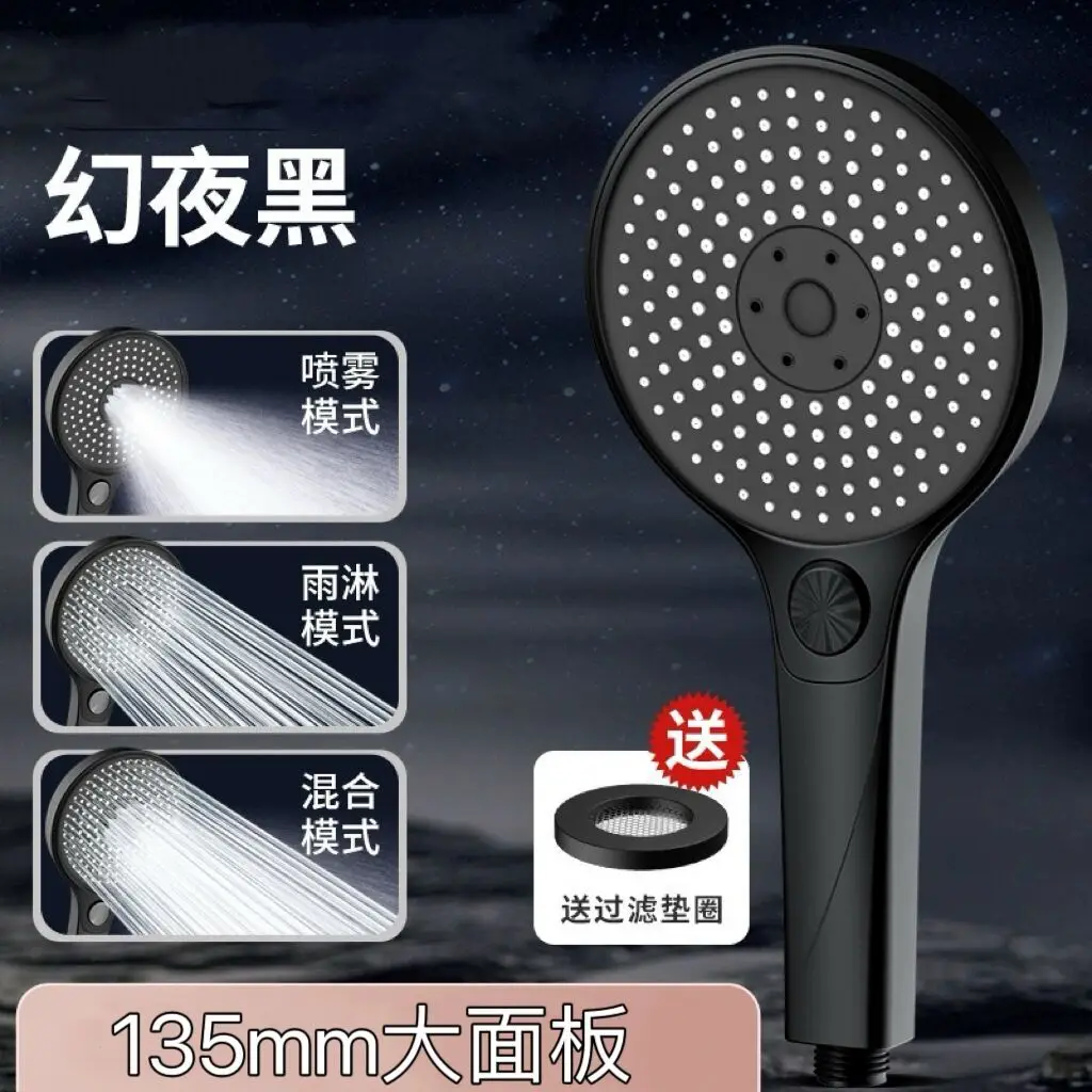 Experience a modern, high-pressure shower with this 135mm large panel pressurized shower head featuring three versatile spray modes for water conservation. Crafted from durable ABS plastic with a sleek chrome finish, it offers rainfall, massage, and powerful jet options, allowing you to customize your shower experience. Its ergonomic, handheld design includes a stylish round face with evenly spaced nozzles for a uniform spray, enhancing both functionality and aesthetic appeal. Compatible with 1.5-meter silver or black hoses, it supports semi-fixed installation options. Perfect for those seeking a powerful yet water-efficient shower, this shower head combines contemporary style with practical features for a satisfying bathroom upgrade.