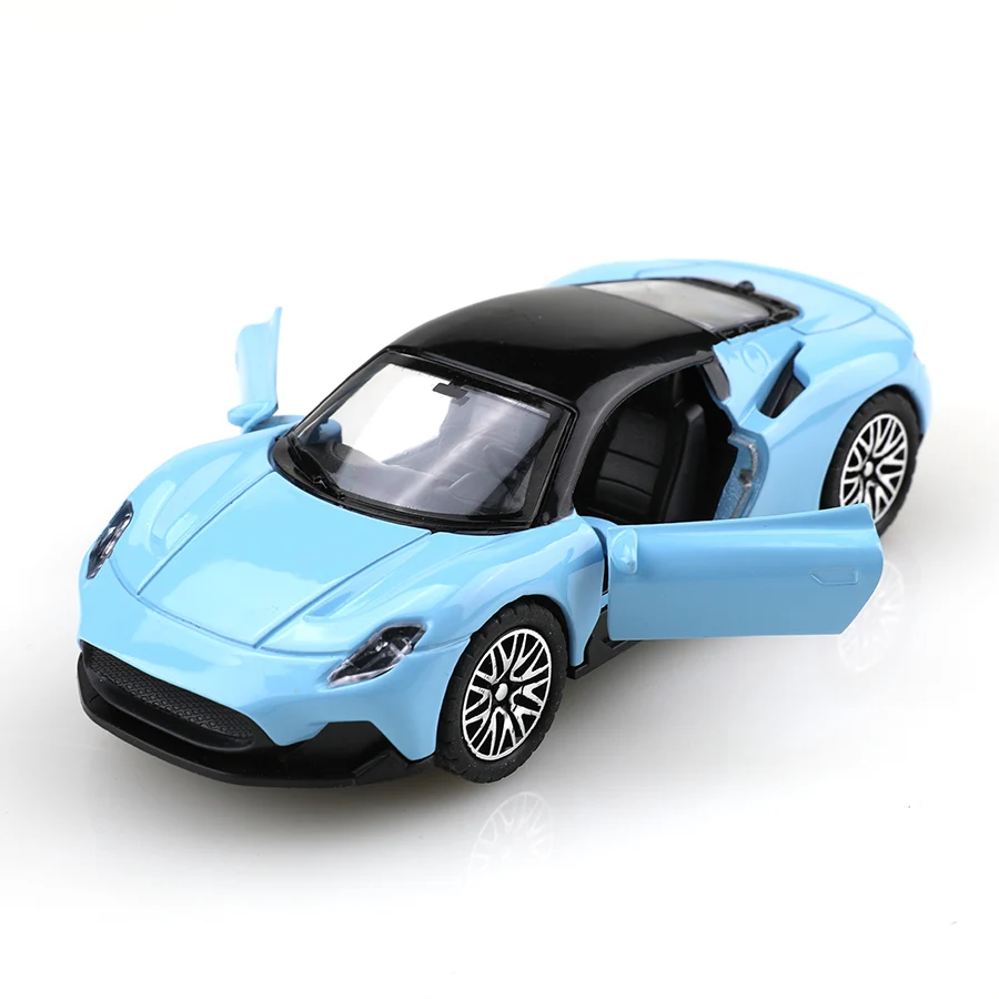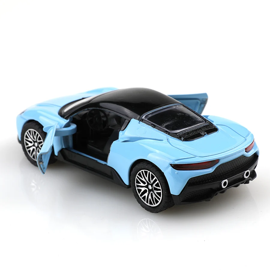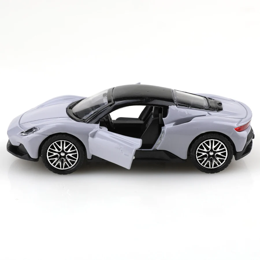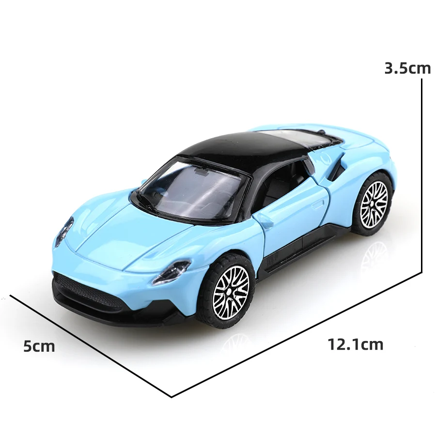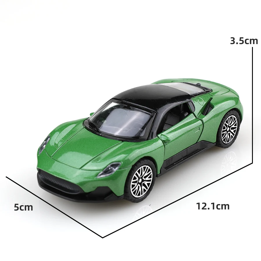 - Measuring approximately 1:36 scale, this toy car replicates the features of a high-performance sports vehicle with detailed aerodynamic design, sculpted lines, and an aggressive front bumper.