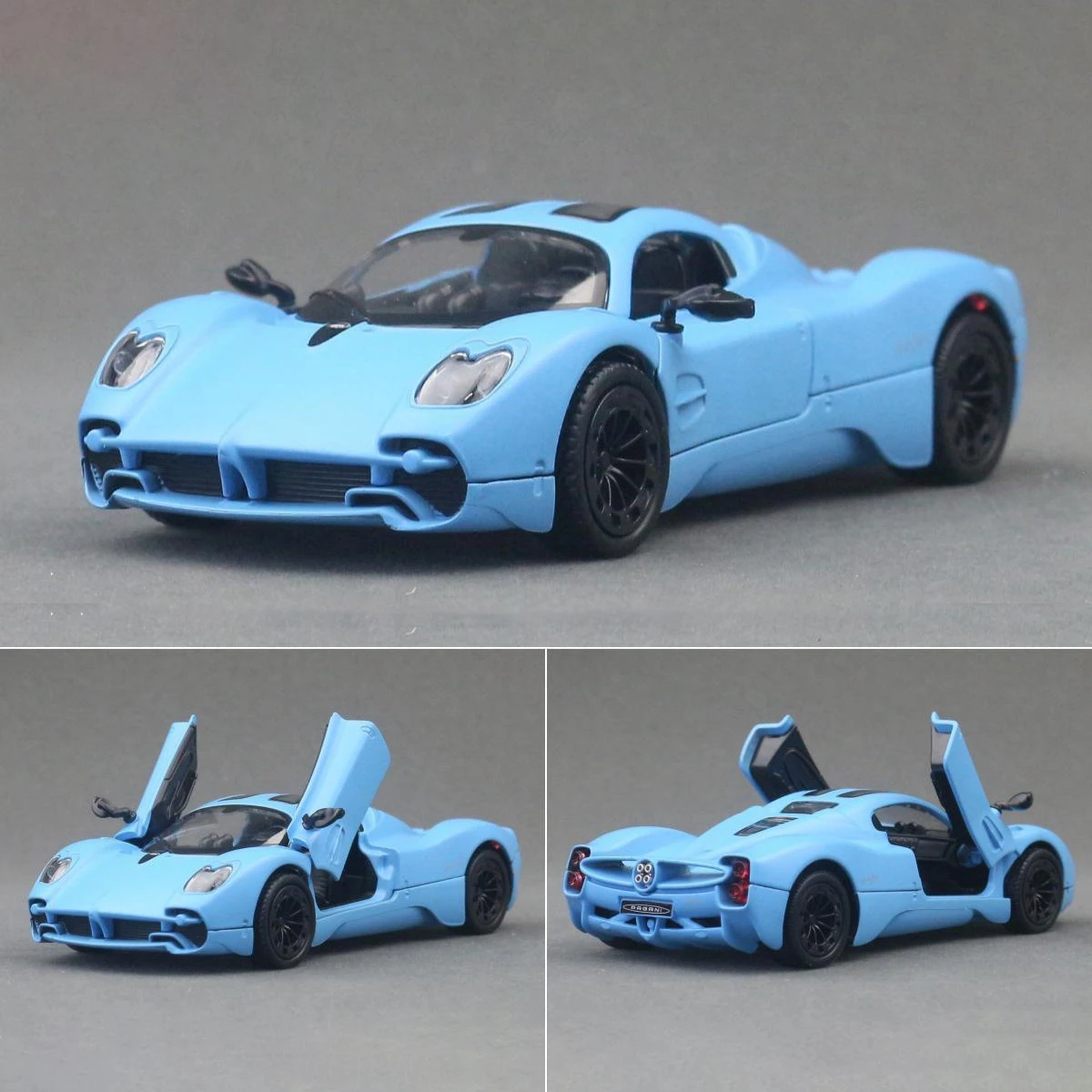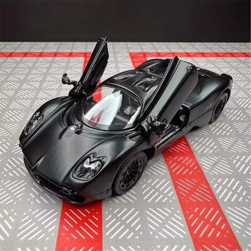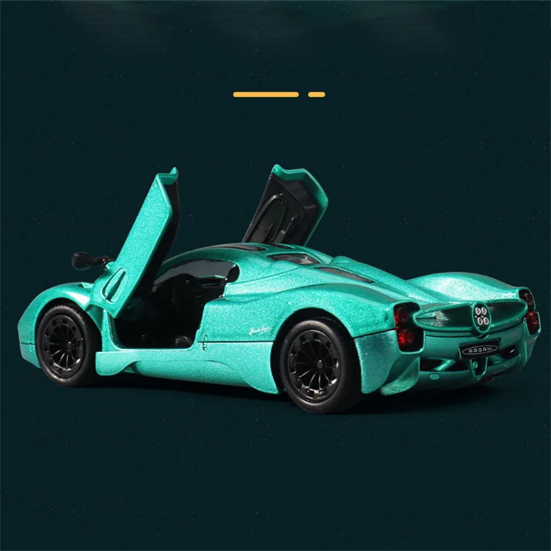 Experience the thrill of high-performance engineering with this detailed 1:36 scale diecast model of the Pagani Utopia alloy sports car. Crafted from alloy and plastic, the model features a sleek, aerodynamic silhouette finished in vibrant colors such as red, black, blue, green, and purple. Its realistic carbon fiber texture, aggressive lines, sharply raked vents, curved windshield, and low-profile body capture the essence of the original supercar. The model is equipped with black multi-spoke wheels, textured sidewalls, subtle red accents near door handles and mirrors, and a fixed rear wing spoiler, making it an impressive collector’s piece for enthusiasts aged 14 and above.