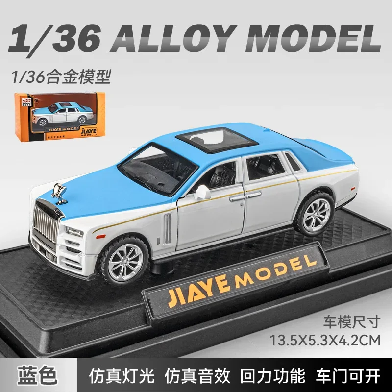 Experience the epitome of luxury with this meticulously crafted 1:36 scale diecast model of a Rolls Royce Phantom. Made from high-quality alloy, this replica captures every detail of the original vehicle, from the iconic Spirit of Ecstasy hood ornament to the sophisticated grille and flowing body contours. Available in elegant white, sleek black, or serene sky blue, this model exudes refinement and craftsmanship. The multi-spoke wheels and transparent framed windows enhance its realistic appearance. Designed for collectors and enthusiasts aged 14 and up, it features functional sound and lighting for added authenticity, making it a perfect display piece or gift for car lovers who appreciate fine details and elegant design.