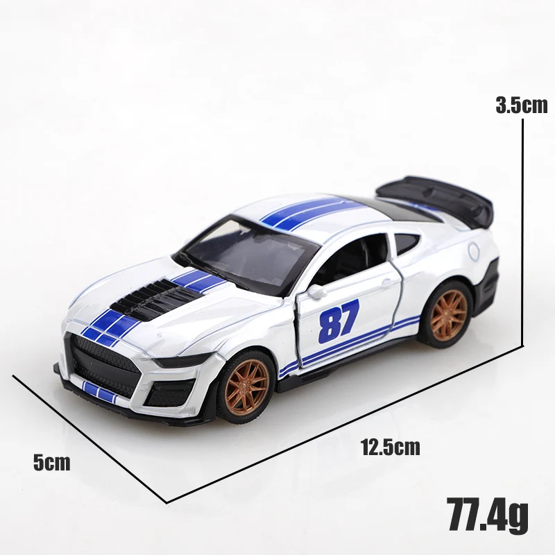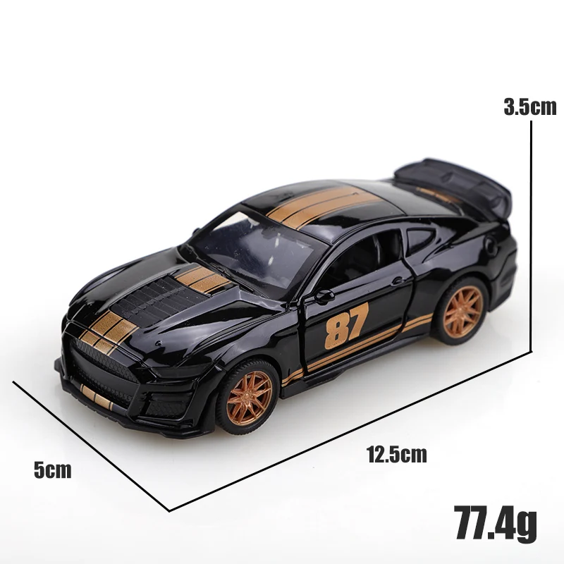 Experience the thrill of the road with this 1:36 scale diecast alloy Mustang pull-back car, available in vibrant red, green, black, and white color schemes. Crafted from durable metal, it features a realistic design with sleek, aerodynamic lines and metallic bronze or copper multi-spoke wheels, capturing the sporty essence of a supercar. No batteries or electricity are needed, making it perfect for both play and display. Suitable for ages 4 and up, this vehicle combines high-quality craftsmanship with an eye-catching aesthetic, allowing you to imagine high-speed adventures or showcase a collection of detailed diecast cars.
