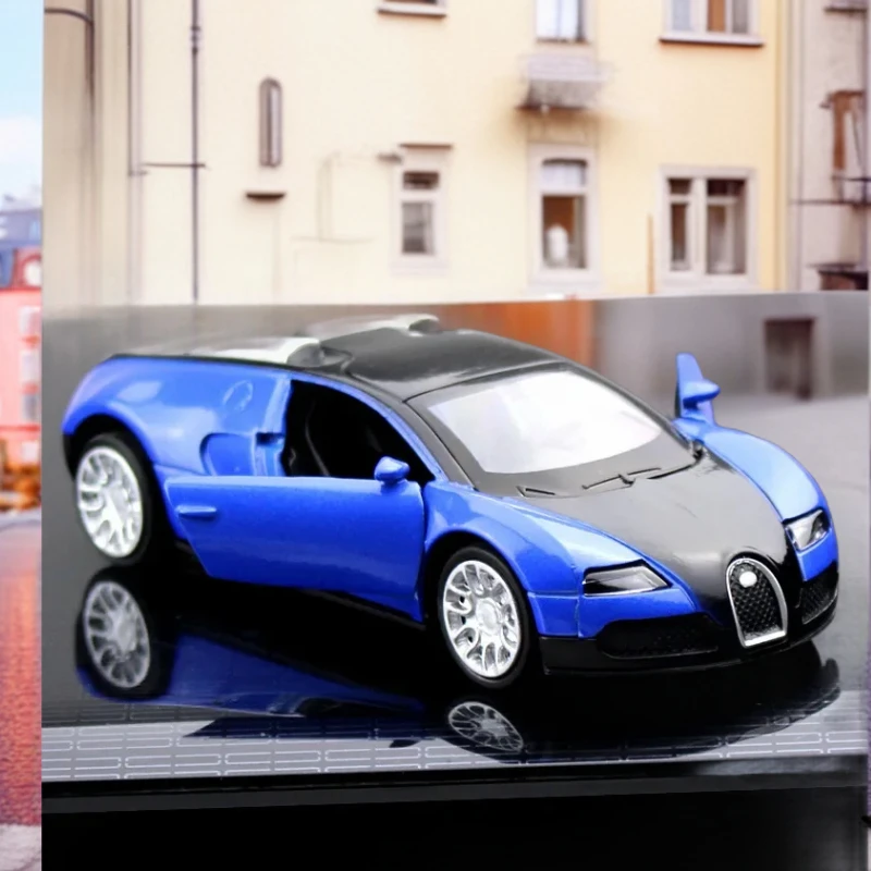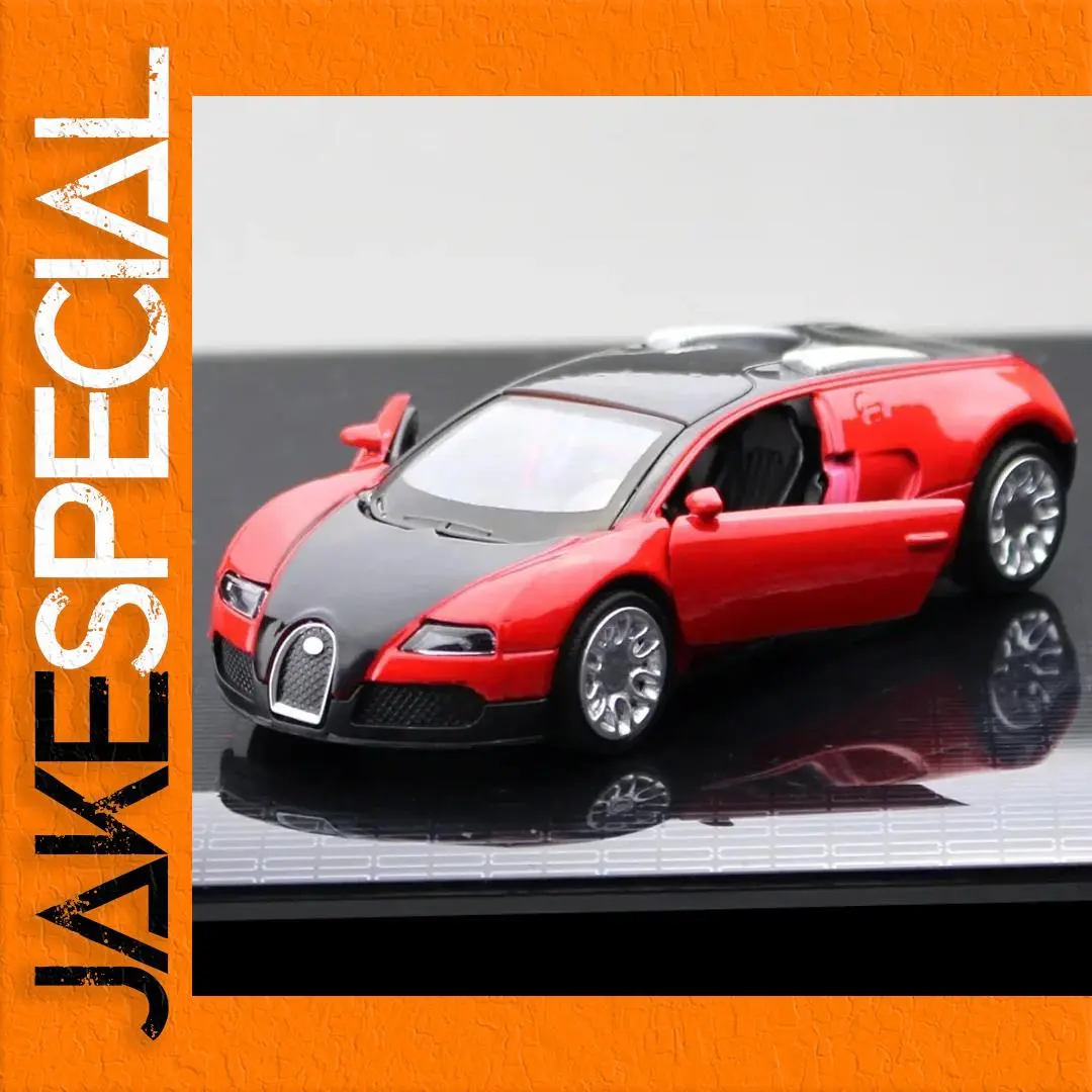 This 1:36 scale diecast metal alloy model car measures 12.5 cm in length, 3.8 cm in width, and 4 cm in height, showcasing a striking glossy red body with a black roof. It features a realistic front grille with an emblem, lifelike headlights, and working doors revealing a minimalist interior with red accents. The model includes a pull-back mechanism for movement and is constructed from durable plastic components. Available in various colors, such as Yellow (NOBOX and BOXED), Blue (NOBOX and BOXED), and Red (NOBOX and BOXED), this sleek car design is ideal for collectors and enthusiasts.
