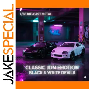 - Designed with vibrant lighting effects on the scene, emphasizing its bold, urban racing style inspired by JDM culture, perfect for a modern display setup.