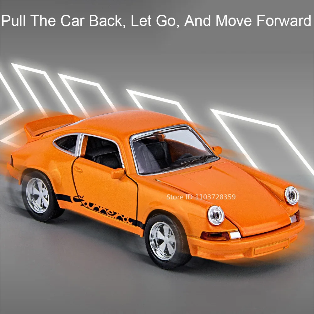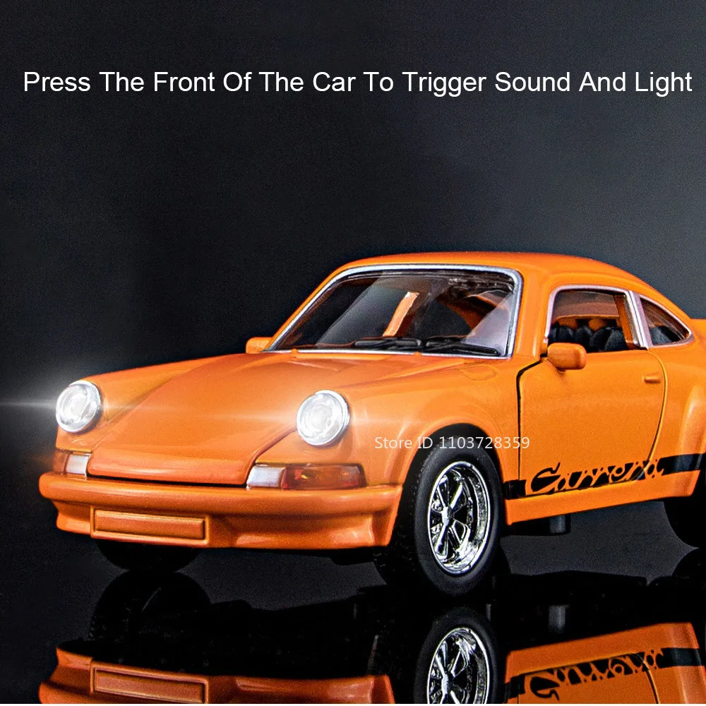Immerse yourself in the world of automotive mastery with this highly realistic 1:36 scale diecast sports car model. Crafted from durable alloy, plastic, and rubber materials, it embodies precision engineering and exquisite craftsmanship. Its vibrant orange finish features a glossy, reflective surface that captures attention and adds a touch of luxury. The model’s smooth, rounded contours pay homage to classic Porsche design, while the operable doors, hood, and trunk open seamlessly for inspection. Activated by pressing the body, the built-in sound and light functions simulate a real car experience. With pull-back propulsion, this miniature supercar offers dynamic play and display possibilities. Perfect for collectors or enthusiasts, it brings automotive passion into your space with style and authenticity.