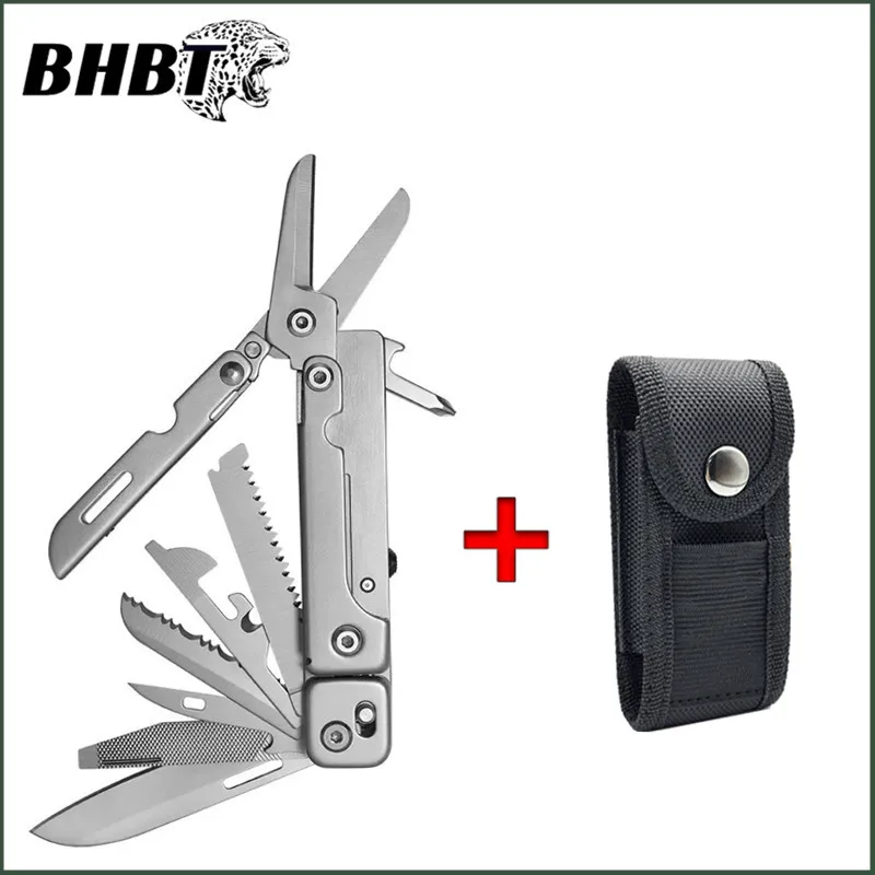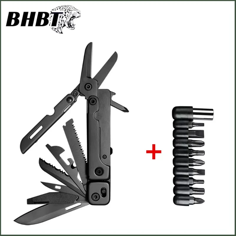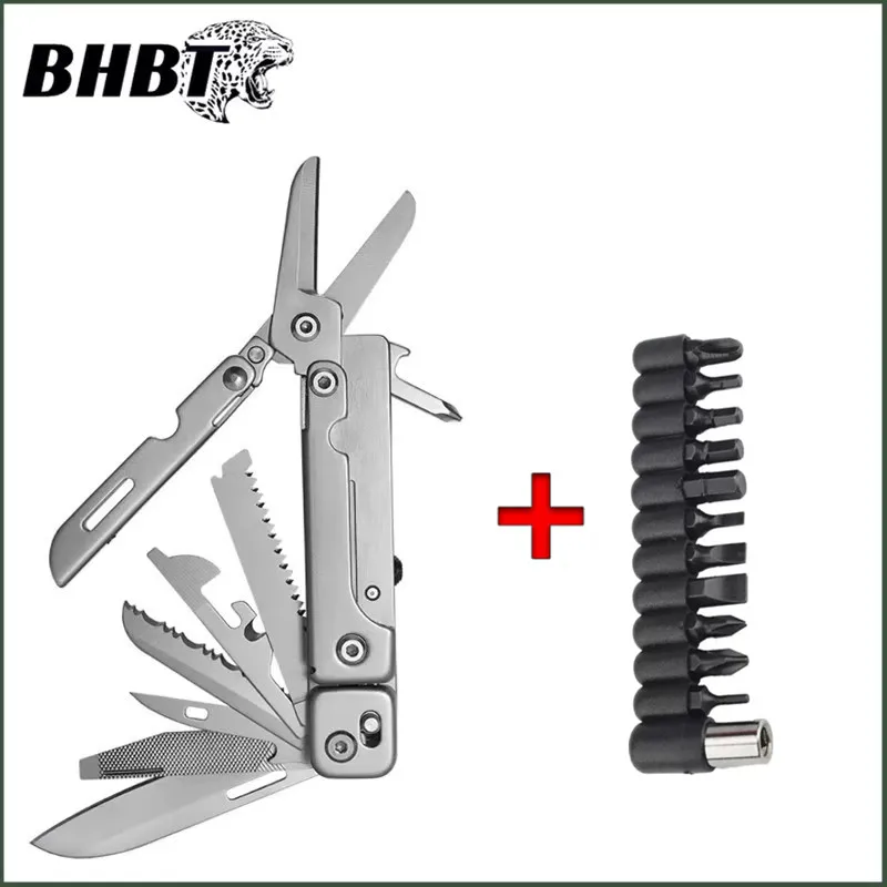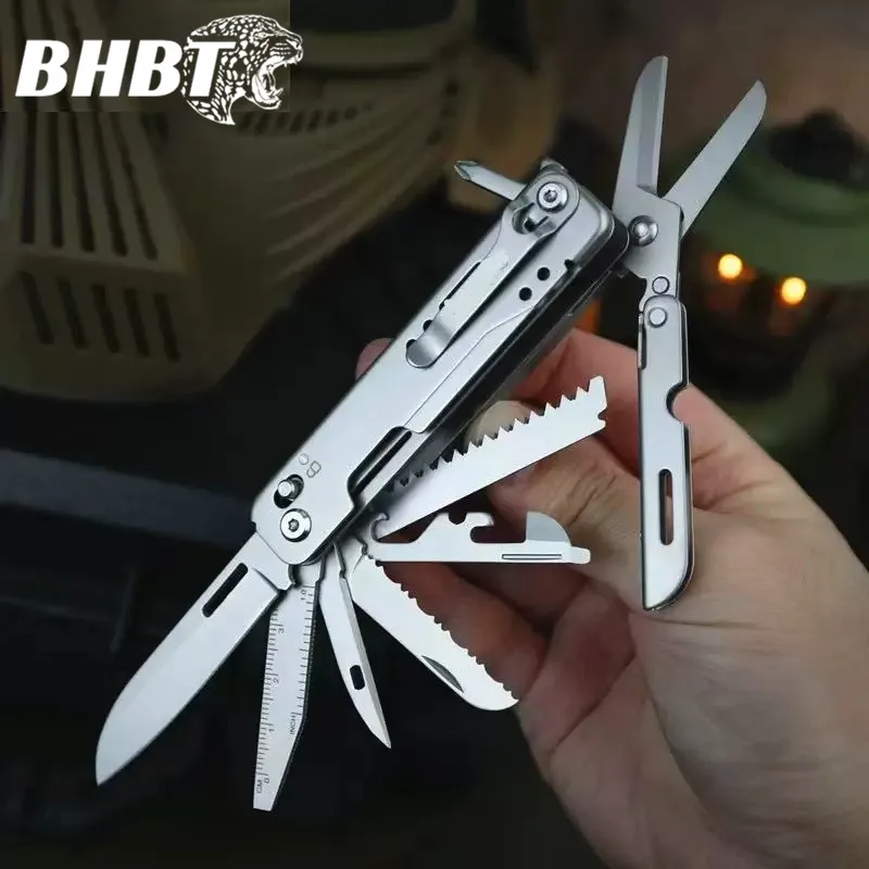 Experience versatility and reliability with this BHBT 14-in-1 folding multitool, crafted from durable stainless steel 440. Weighing only 135 grams, it measures 16.5 cm (6.5″) when fully extended and folds down to 9.3 cm (3.66″) for compact carrying. Featuring a sleek silver finish, this multitool includes scissors, a knife, threader, belt clip, large and small slotted screwdrivers, Phillips screwdriver, bottle and can openers, wire stripper, ruler, files, saw, and tooth knife. Designed for outdoor adventures and household tasks, its foldable structure ensures easy portability while its multifunctional tools provide dependable performance wherever you go.