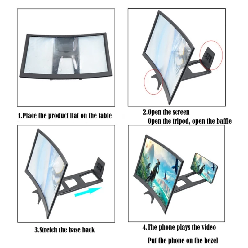 Experience a new level of clarity and magnification with this stunning 14-inch curved screen magnifying glass. Designed specifically for mobile phones and desktop use, this sleek device features an ultra-clear blue acrylic lens that provides sharp, high-definition magnification. Its curved surface creates a smooth, flowing profile, amplifying your screen content by 3X or 4X effortlessly. The minimalist ABS frame ensures durability while maintaining a modern aesthetic, making it an attractive addition to any workspace or living area. The standing lounger design offers hands-free convenience, perfect for watching videos, reading small text, or viewing detailed images with enhanced clarity. Lightweight and portable at just 185g, it inspires confidence to use it daily. This reliable magnifier blends style and practicality seamlessly, elevating your viewing experience.