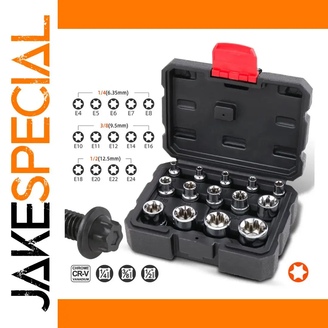 - Includes 14 high-quality female E-TORX sockets ranging from E4 to E24, suitable for various automotive and industrial applications requiring torque transfer.