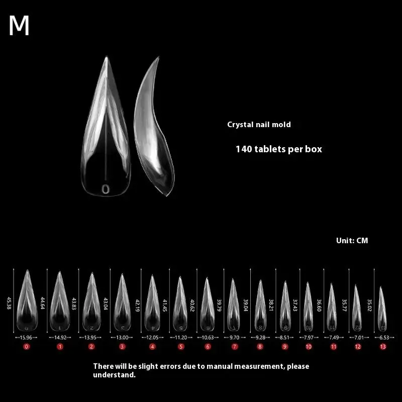 - Includes 140 transparent, lightweight, crease-free nail tips in two sizes: Small (S) and Medium (M), fitting a wide range of nail sizes and ideal for full coverage needs.