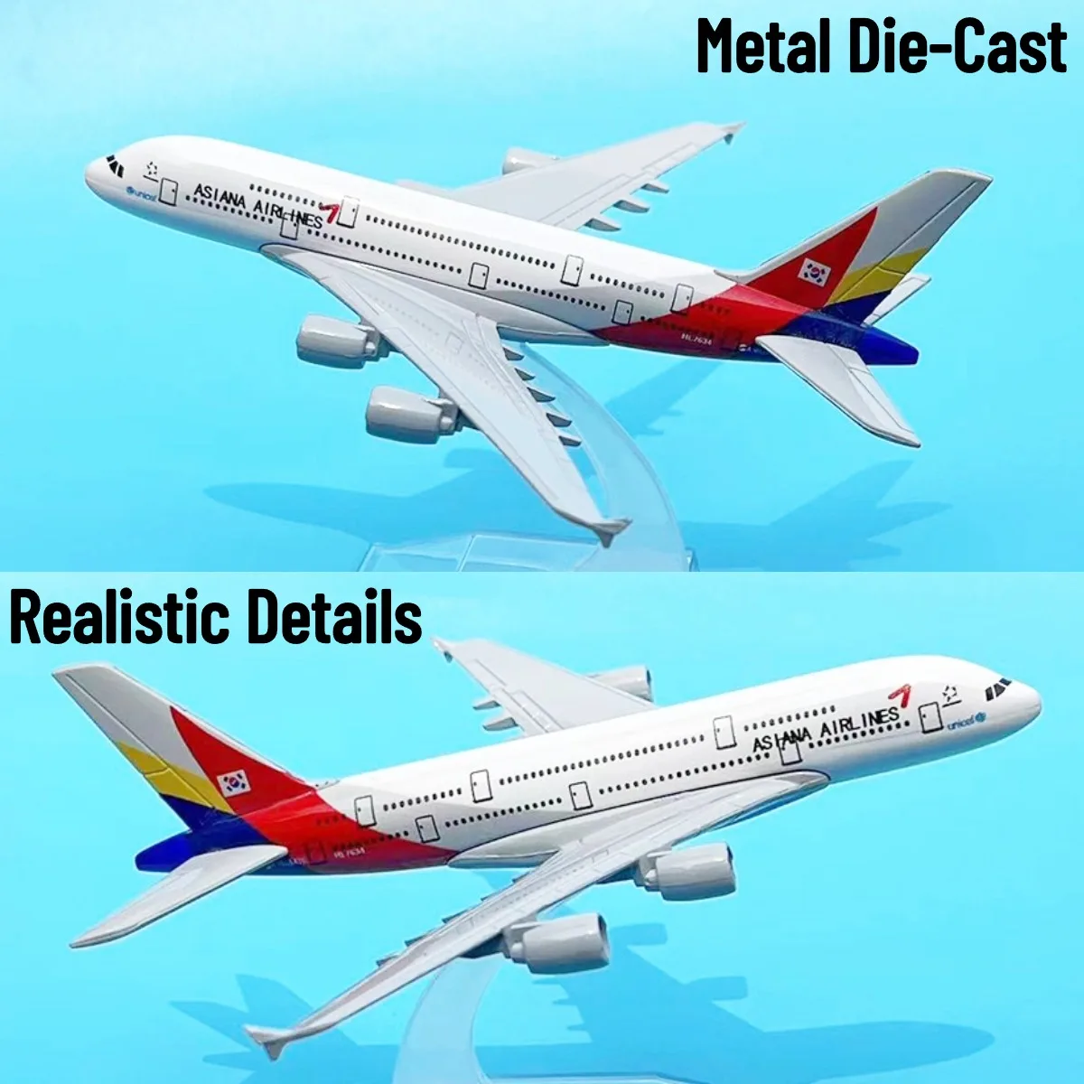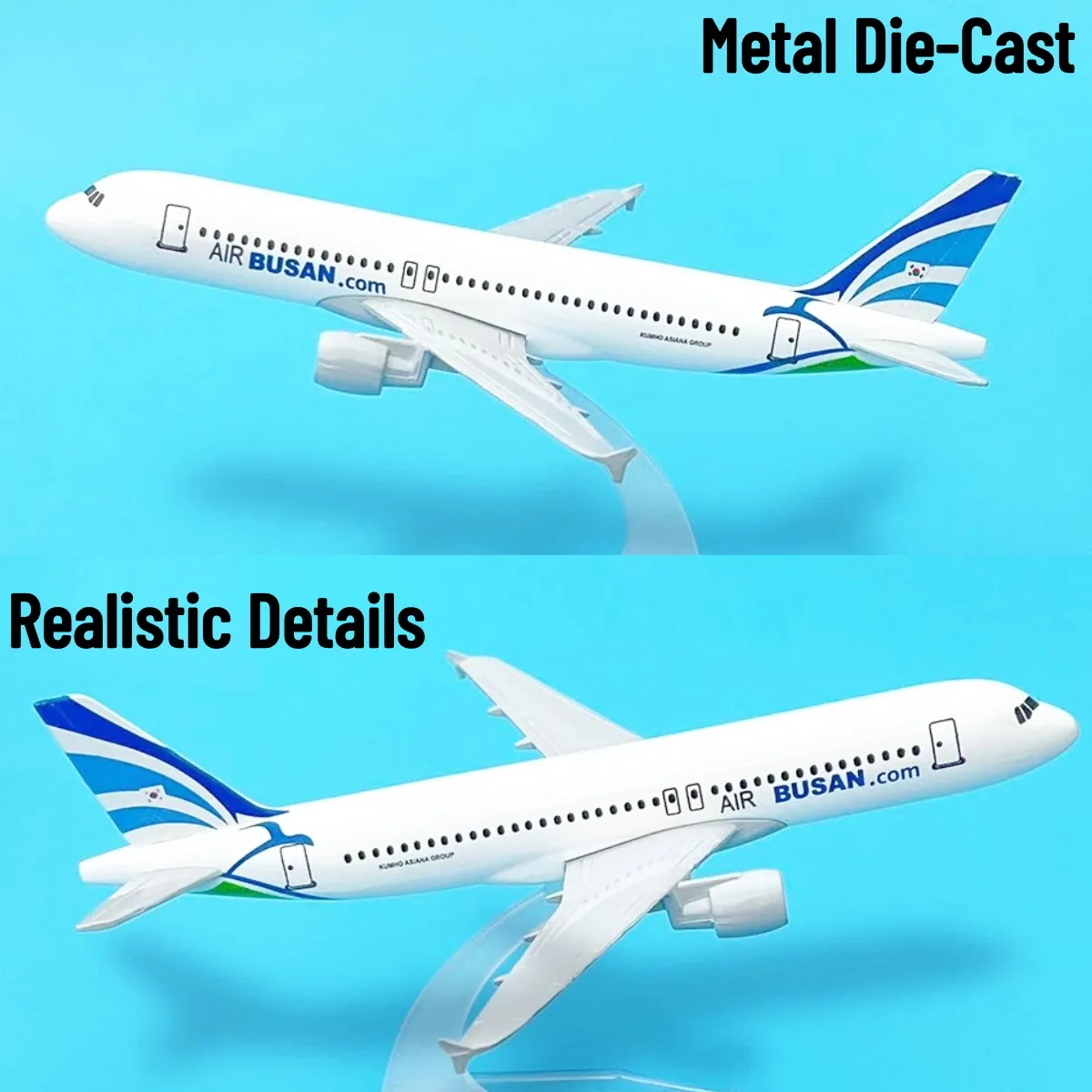 Experience the beauty of aviation with this meticulously crafted set of 1:400 scale aircraft models. Each miniature measures approximately 16cm in length, showcasing detailed diecast construction combining metal for the aircraft and plastic for the holder. The vibrant color schemes and sleek designs mimic real airlines such as Asiana, Busan, Seoul, Eastar Jet, T Way, Jeju, and Jinair, capturing their unique branding. These models are perfect for decorating your home or office, adding a touch of elegance and sophistication. Whether displayed on a shelf, used as a cake topper, or part of an aviation collection, they offer a realistic and stylish tribute to air travel enthusiasts. Watch your space come alive with these contemporary miniature art pieces that truly elevate any setting.