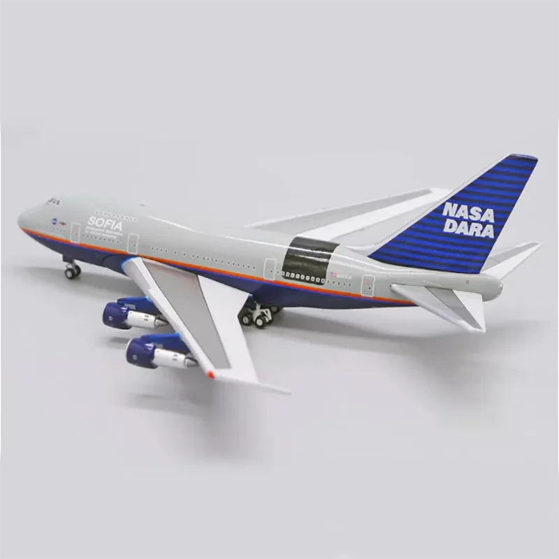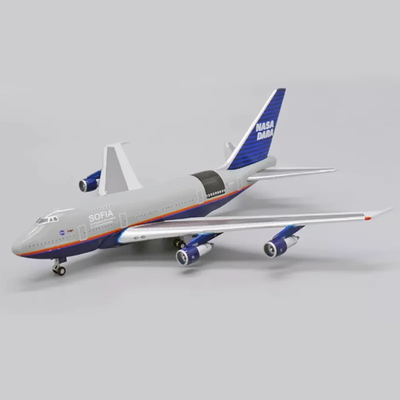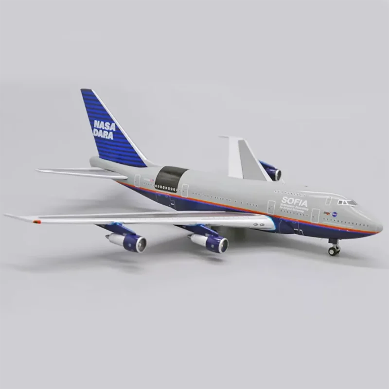 Experience the impressive craftsmanship of this detailed diecast B747SP aircraft model. Measuring approximately 14 cm in length, 15 cm in width, and 5 cm in height, this high-quality replica is crafted from alloy, showcasing a sleek metallic finish. Its realistic features include intricate panel lines, window markings, and fine surface details that accurately mimic the original aircraft. The striking tail fin is painted vibrant blue with horizontal dark blue stripes and the bold white “NASA DARA” lettering, creating a vivid visual contrast. The white wings are smoothly molded with detailed spoilers and ailerons, adding to its authentic appearance. Perfect for collectors and enthusiasts, this model stands out as a sophisticated decorative piece, capturing the essence of aerospace engineering artistry.