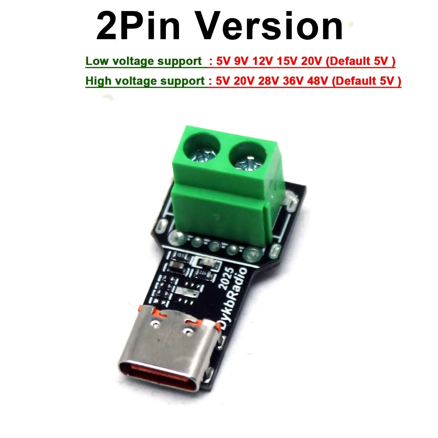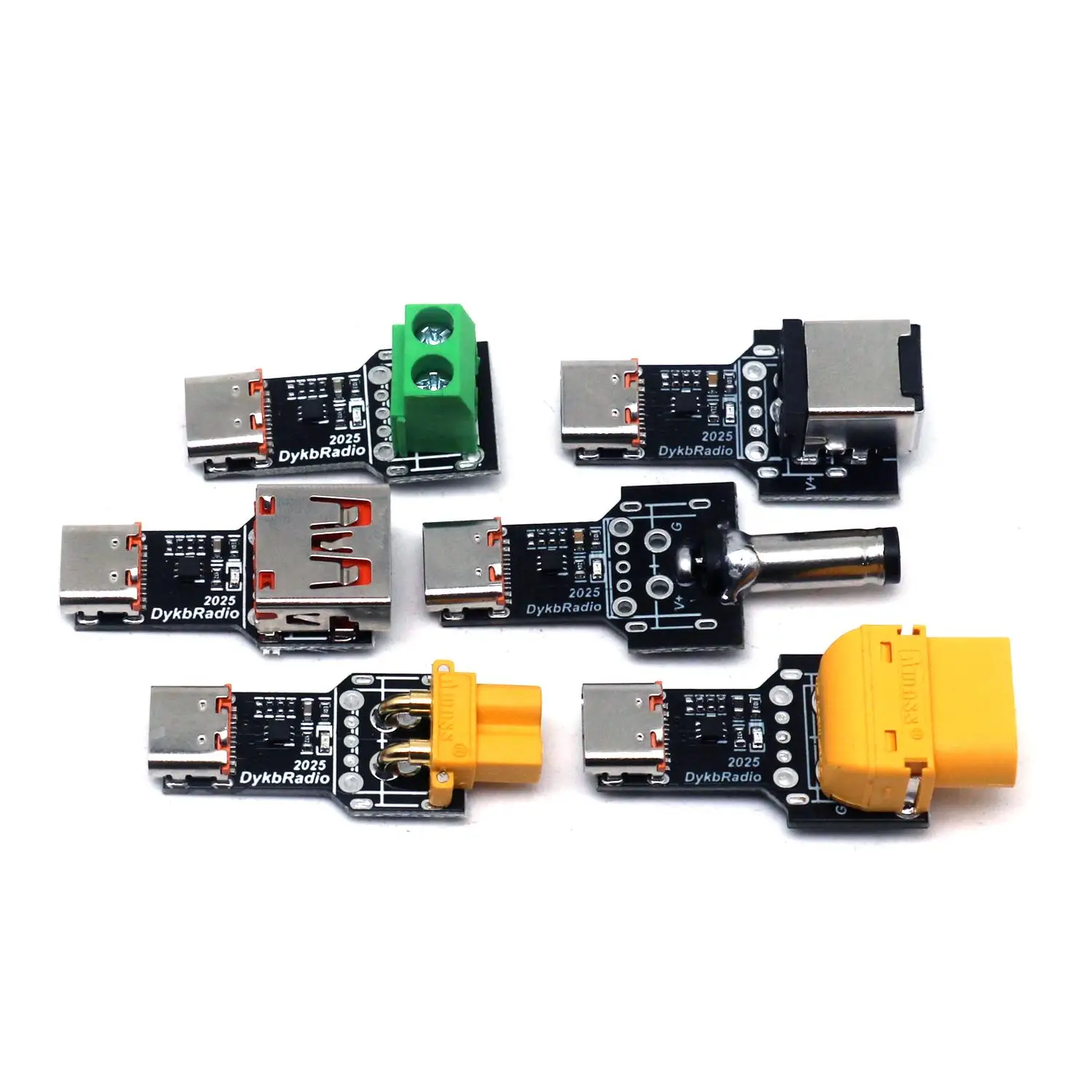 Experience the convenience and versatility of this high-performance decoy board, designed to simulate power delivery sources with precision. This sleek, compact circuit board features a matte black finish and a modern industrial aesthetic, with white silkscreen markings that clearly indicate connection points and configuration options. The prominent metal Type-C USB connector provides seamless compatibility with various devices, supporting quick and efficient charging. Brightly colored connectors like the orange XT60 and green terminal block add visual clarity, highlighting the board's high-current capabilities. Perfect for professional applications, this module simplifies testing and development for USB PD and QC protocols, allowing you to confidently experiment with different voltage output configurations while maintaining a clean, organized setup.