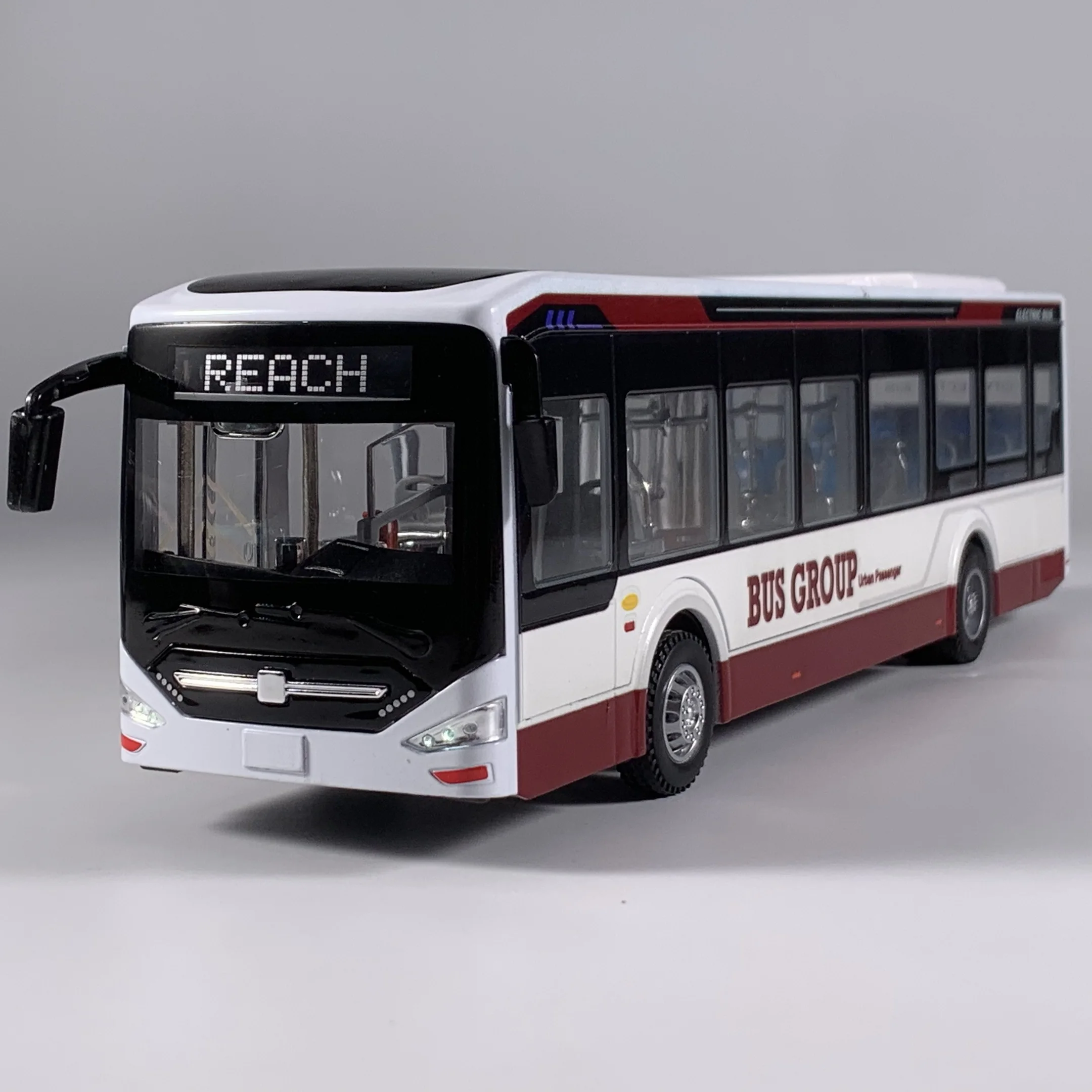 Experience the realism of this high-quality 1:42 scale diecast model of a modern city bus, designed with meticulous attention to detail. Crafted from durable metal, this collectible features an aerodynamic silhouette with a smooth, curved roof, bold black-framed windows, and a striking black windshield. Its realistic wheel rims and tires add authenticity, while the integrated light and sound functions bring the model to life. Perfect for adult collectors and enthusiasts, it offers a contemporary appearance available in striking black, blue, or red. Whether displayed on a shelf or used as a sophisticated gift, this model captures the essence of urban transportation with precision craftsmanship and vibrant color options, making it a must-have addition to any collection.