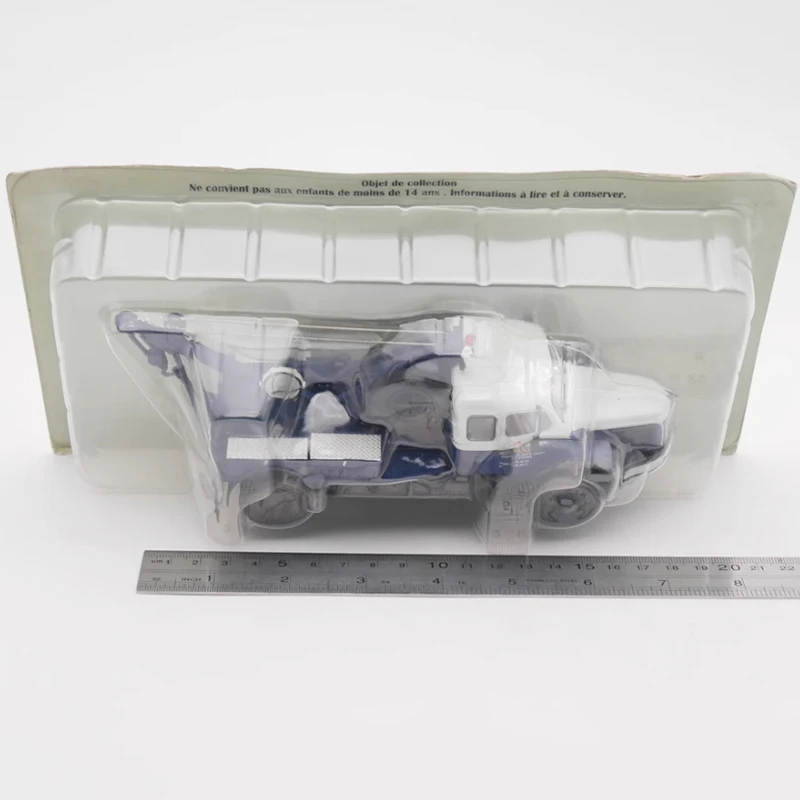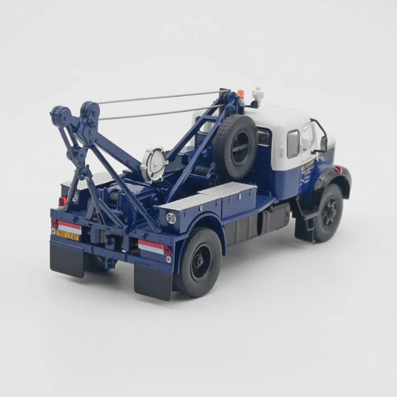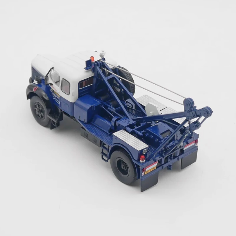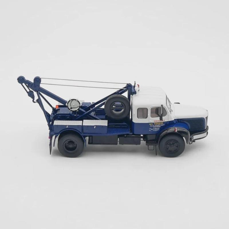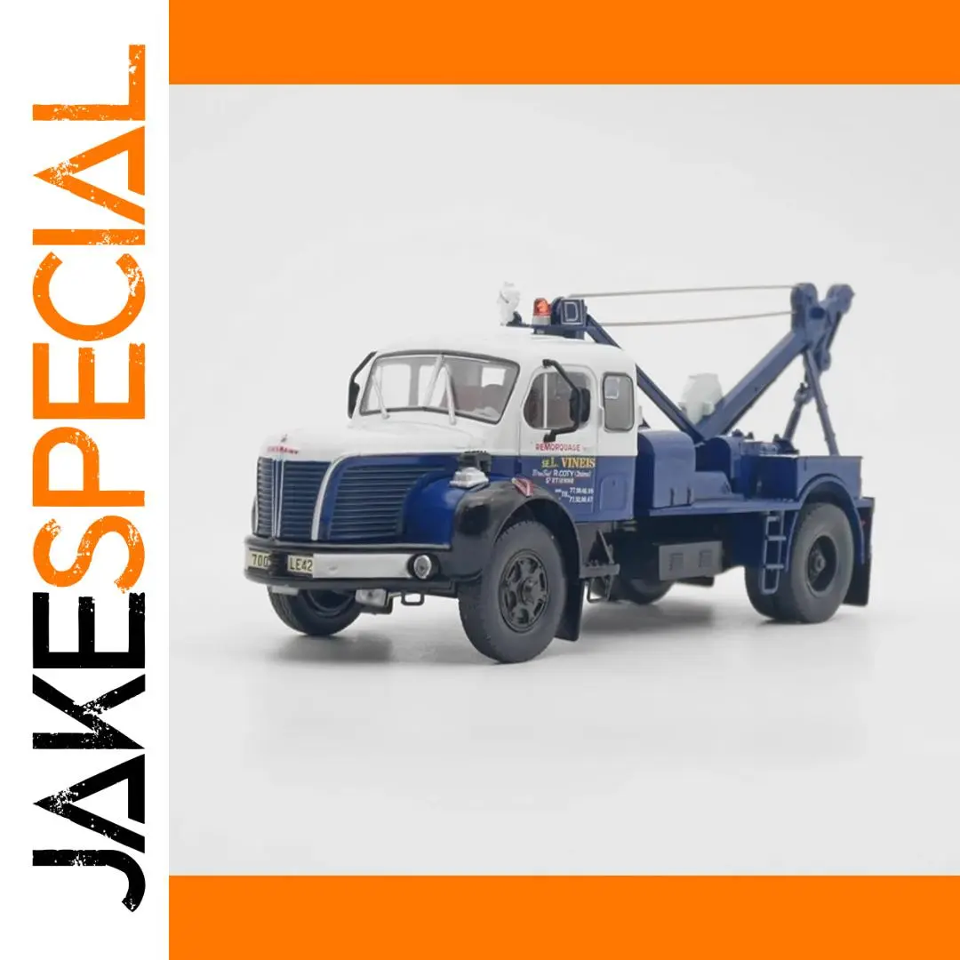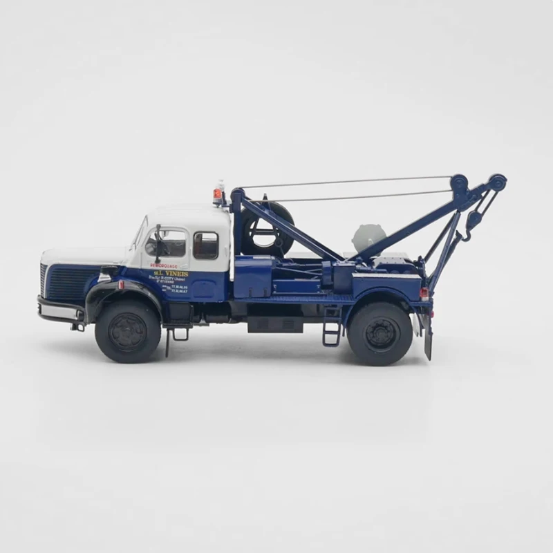Experience the craftsmanship of this meticulously crafted diecast model of the Berliet GLM Truck Road Rescue Vehicle, scaled at 1:43. Its sleek white finish with vibrant blue accents highlights its professional rescue vehicle design. The model’s surface features intricate detailing, including a finely sculpted front grille with vertical slats, realistic transparent windows framed in black, and authentic decals like “Remorquage” and “Soci. Vinés” to evoke real-life branding. The black wheels with detailed rims and textured tires add to its realism, while the blue extendable boom lift with metallic support cables offers a dynamic, functional appearance. Perfect for collectors or as a display piece, this model showcases engineering excellence and sophisticated design in every detail.