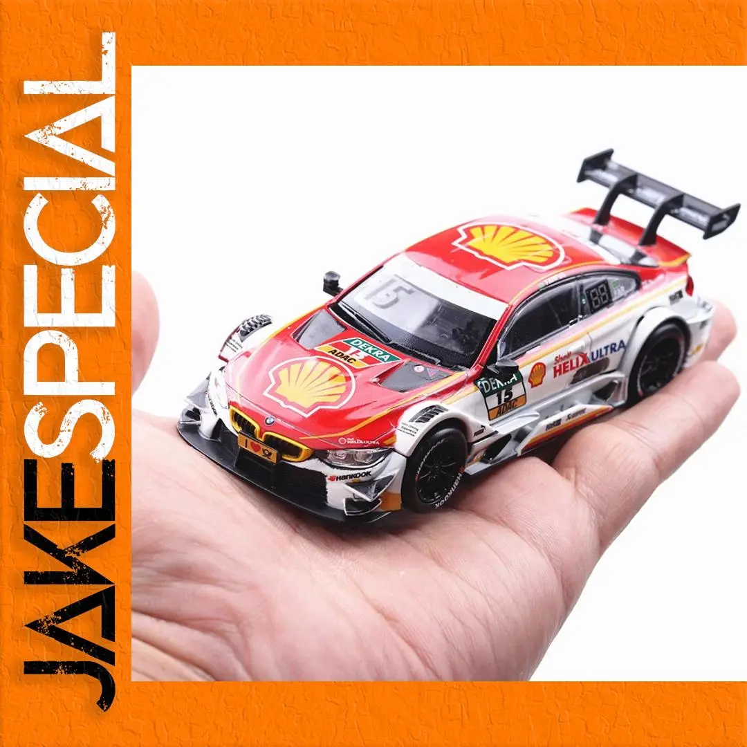 Imagine showcasing this beautifully crafted miniature of the BMW M4, perfectly scaled at 1:43. Its glossy white finish, accented by striking red details on the hood, roof, and rear wing spoiler, captures the dynamic essence of race cars. Intricate sponsor decals like Shell, DEKRA, and ADAC add realism, while the black-tinted windows and meticulously detailed rims enhance its sporty appeal. Whether displayed on your desk or in a collection, this model exudes energy and precision. Made from durable alloy and plastic, it offers a sturdy, authentic feel. Its compact size makes it ideal for both enthusiasts and young collectors. Own a piece of racing elegance that stands out with vibrant colors and fine craftsmanship.
