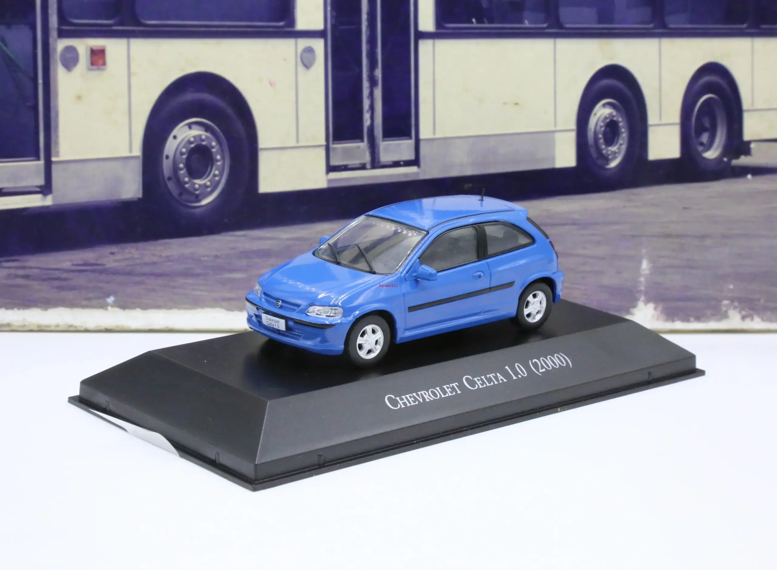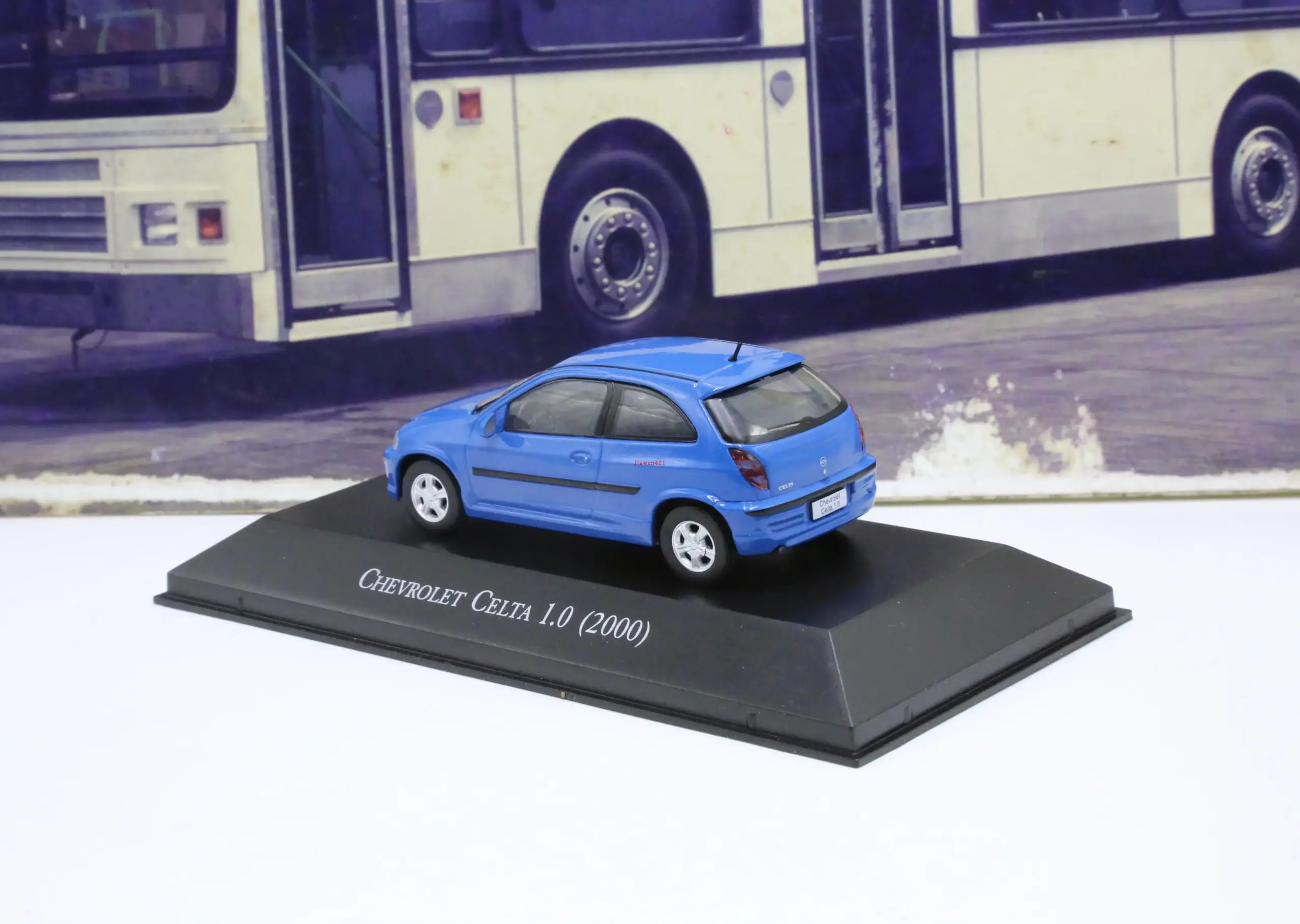Enhance your collection with this detailed 1:43 scale diecast model of a Chevrolet Celta 1.0 (2000), crafted from alloy and plastic. Measuring 18 x 11 x 8 cm, this realistic replica features a sleek light blue finish, meticulously designed windows, doors, side mirrors, and intricate wheel rims. Perfect for display, it comes in original packaging with a scenic background to emphasize its lifelike appearance. Designed for adult collectors aged 14 and above, it is a non-electrical, high-quality souvenir or gift item that captures the classic style and craftsmanship of the original vehicle.