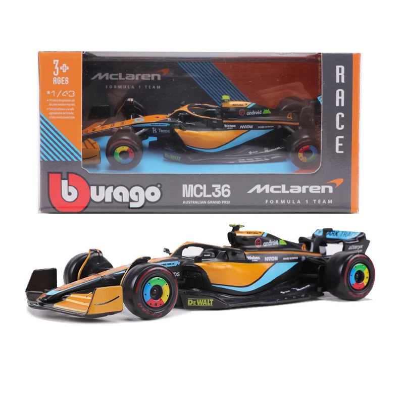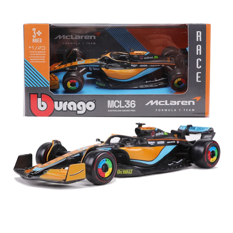 Immerse yourself in racing history with this detailed diecast model of the 2022 McLaren MCL36 F1 racing car, scale 1:43. Crafted from durable metal, this model captures the sleek design and iconic markings of the No.3 and No.4 vehicles, making it a perfect collector’s piece. Its precise detailing and high-quality finish bring the thrill of Formula 1 into your collection. Whether displayed on a shelf or used to inspire your passion for racing, this model is crafted for adult enthusiasts who appreciate craftsmanship and attention to detail. Elevate your collection with this stunning replica of a modern racing icon.