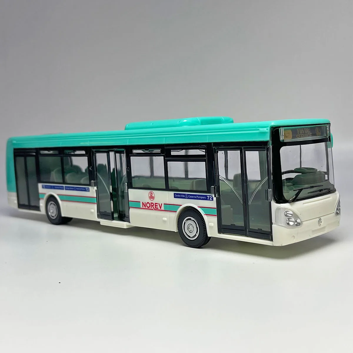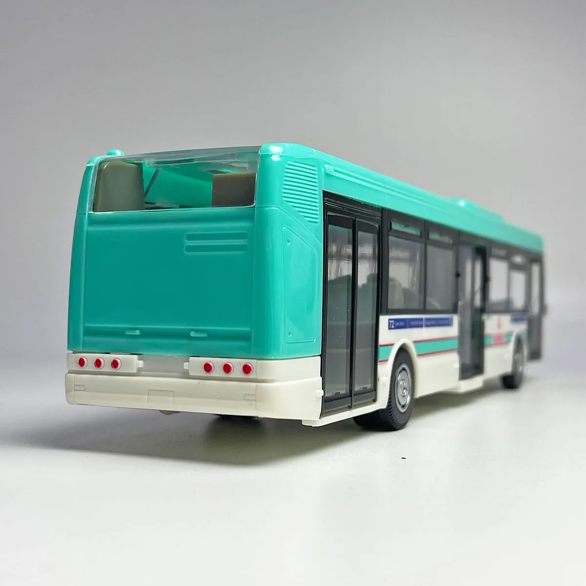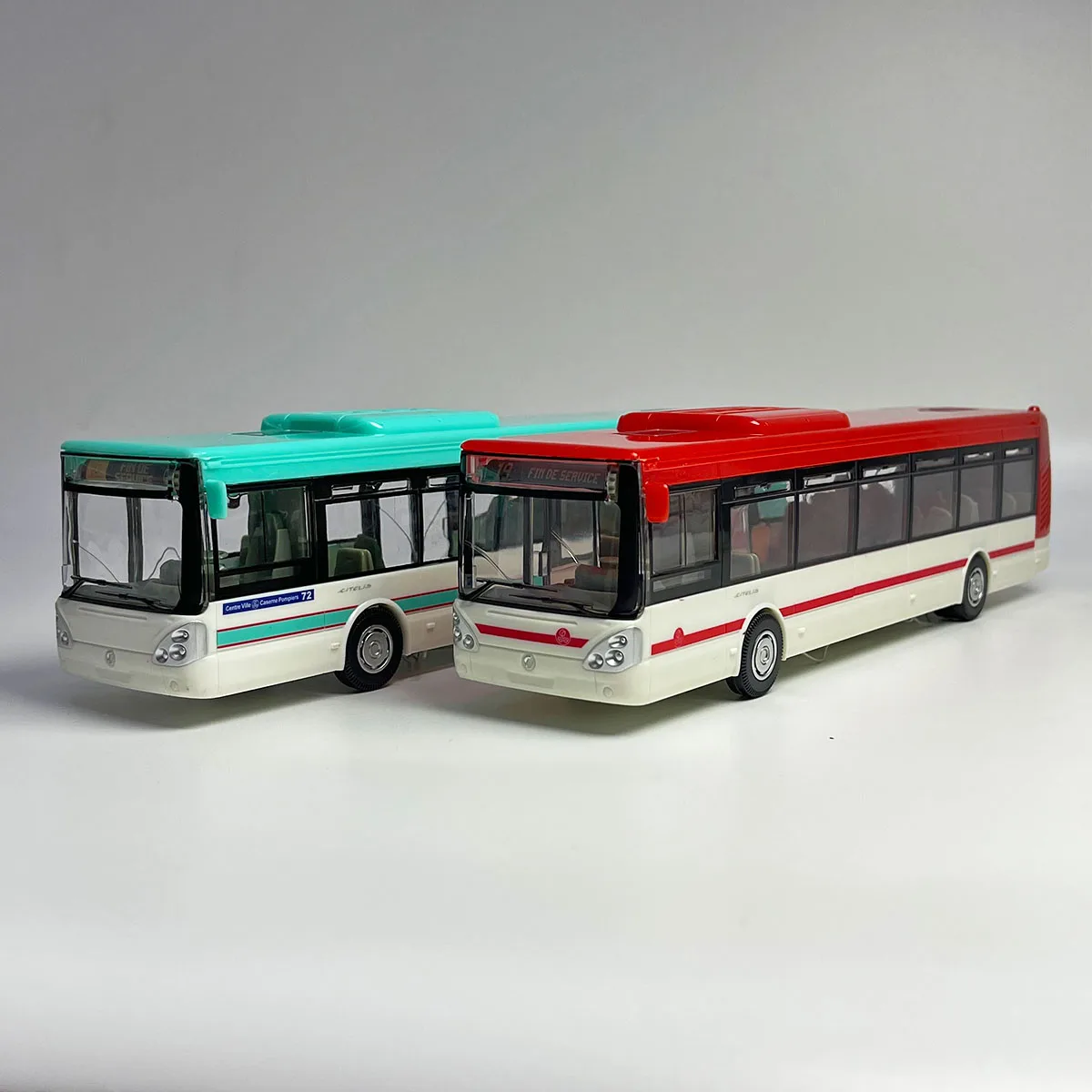 Experience the charm of urban transportation with this finely detailed 1:43 scale city bus toy model, crafted from durable rubber and plastic. Featuring realistic diecast construction, it showcases vibrant color schemes—one with a sleek white body accented by a turquoise roof and upper front, and another with a vintage-inspired white body, bright red roof, and matching stripe. Both models exhibit crisp details, including large transparent windows, headlights, windshield wipers, and door outlines. With a smooth surface finish and minor paint imperfections that add to its handcrafted appeal, this collectible ornament is perfect for display or decoration, designed exclusively for adult collectors.