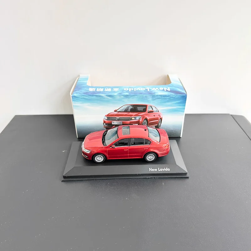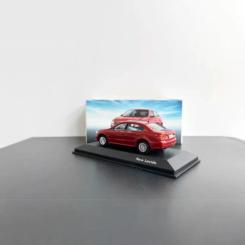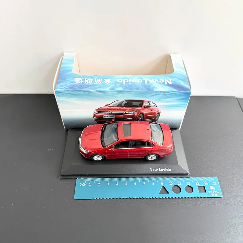 This 1:43 scale diecast alloy car model features a sleek, modern sedan design in a vibrant “A” red color, showcasing realistic details such as a detailed front grille, headlights, and transparent windows. The alloy body is complemented by plastic components and rubber tires, with four black wheels featuring polished silver multi-spoke hubcaps that can turn for added realism. The model has non-functional engine cover, trunk, and doors but maintains a highly detailed appearance suitable for collectors and display enthusiasts aged 14 and up. Crafted for durability and visual appeal, this collectible miniature effortlessly captures the essence of a contemporary sedan in a compact, refined form.